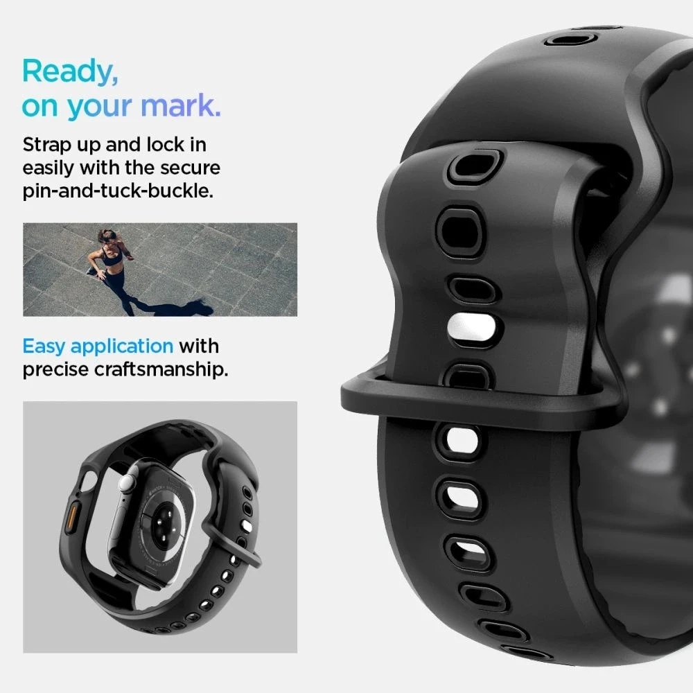 Pasek Spigen Liquid Air Pro to połączenie nowoczesnego designu, funkcjonalności i pełnej ochrony zegarka. Dzięki zintegrowanej konstrukcji z obudową, Apple Watch 46 mm zyskuje ochronę 360° – również na krawędziach oraz przycisku bocznym, który osłonięto dotykową warstwą dla pełnej responsywności.