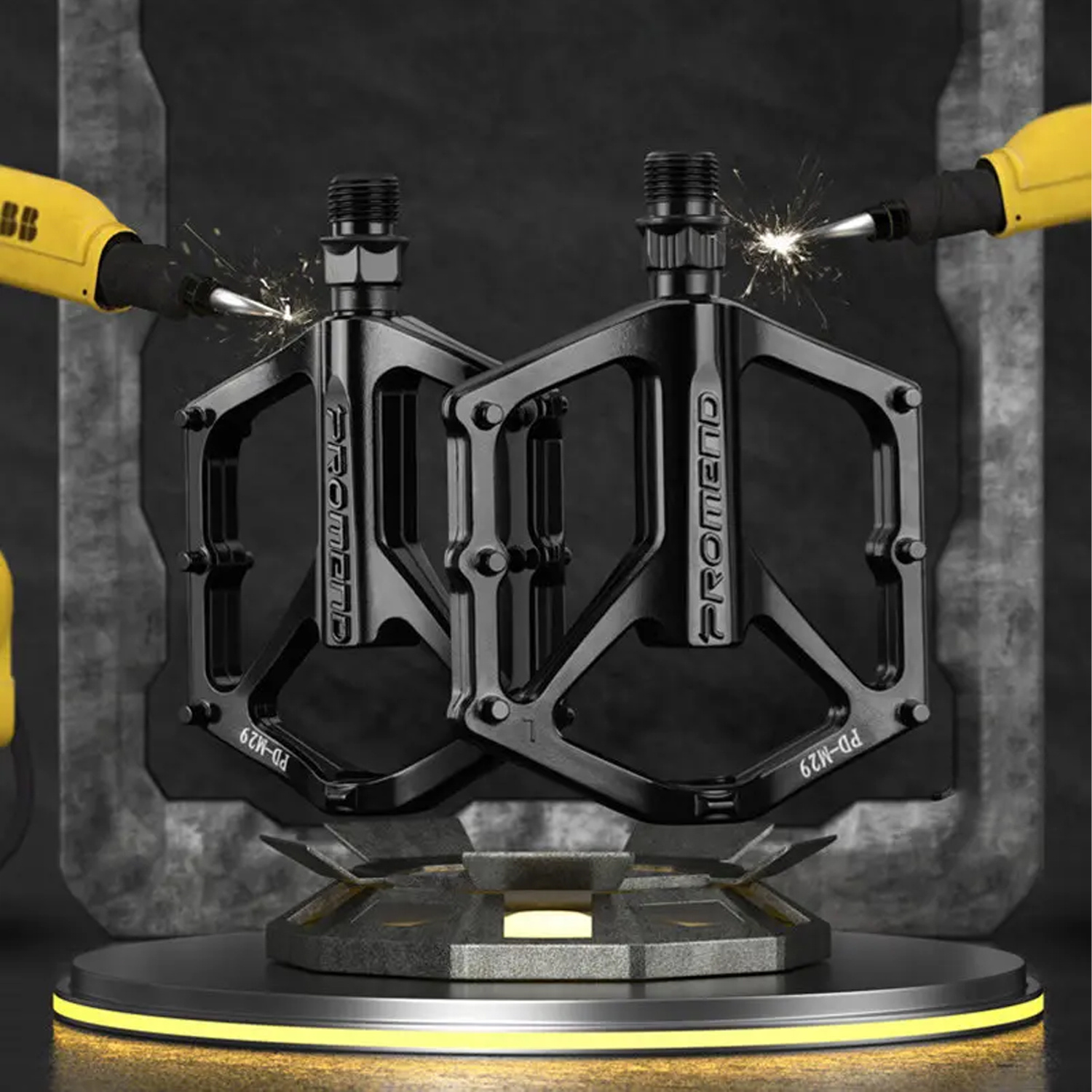 Platformy pedałów rowerowych Promend M29 zostały wykonane ze stopu aluminium. Pedały są przy tym bardzo lekkie.