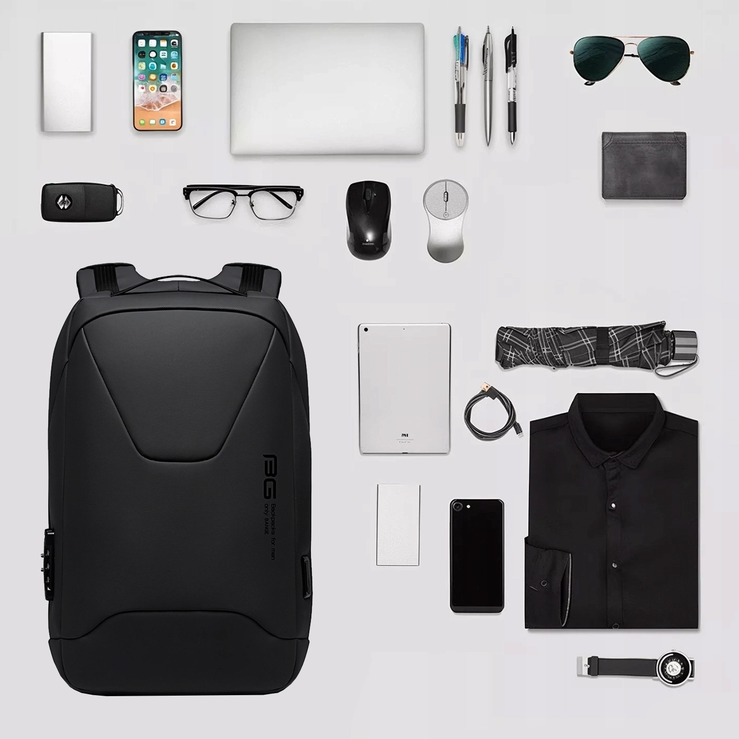 Opinie o Plecak Antykradzieżowy wodoodporny Bange na laptopa 15.6" miejski podróżny 46x30x15 cm do pracy samolotu męski damski z gniazdem USB i zamkiem szyfrowym Czarny