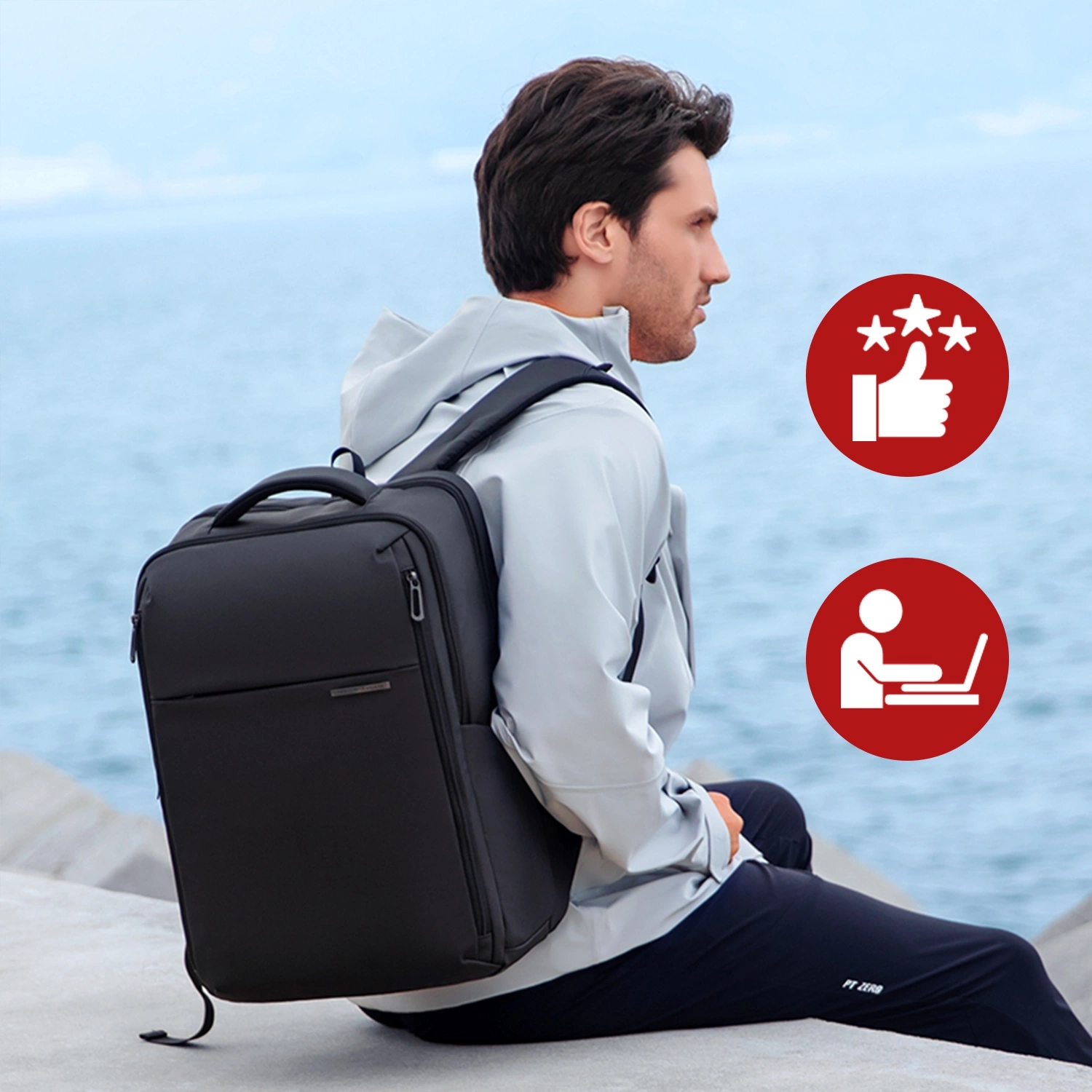 ✅ 23-litrowa pojemność z wieloma kieszeniami, dedykowana komora na laptopa 15.6" i iPada 11", wentylowane plecy i szlufka na walizkę sprawiają, że plecak Mark Ryden jest stworzony zarówno na codzienny dojazd do biura, jak i tygodniowy wyjazd służbowy.