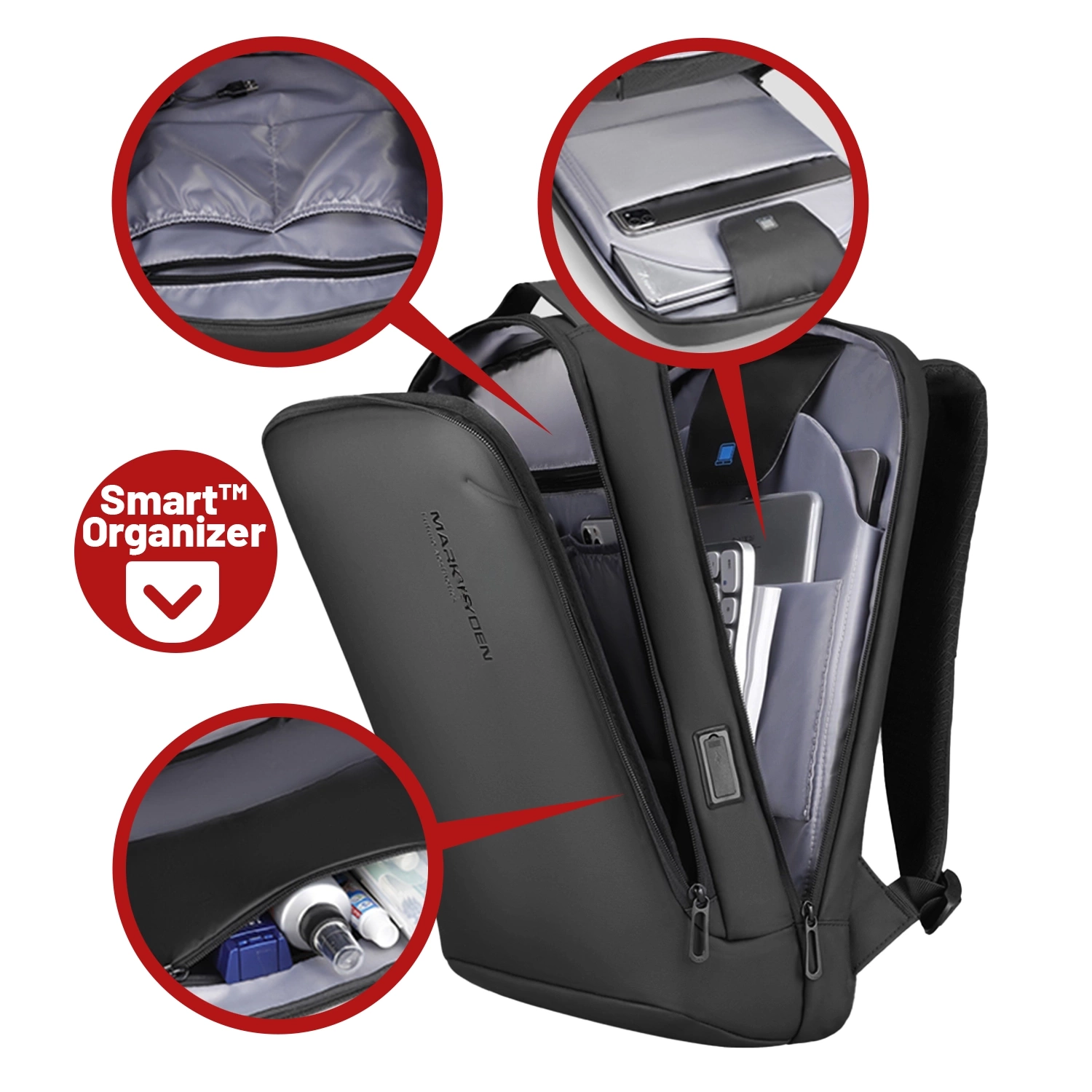 Plecak Mark Ryden Campus 15.6" Wodoodporny USB Smukły Biznesowy Czarny