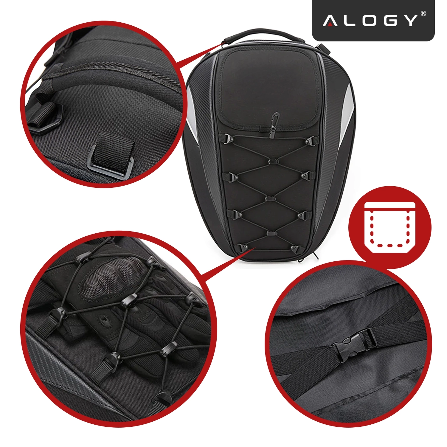 Opinie o Plecak torba motocyklowa wodoodporna 40L – 5w1 – kufer, podsiodłowa, bagażnikowa, na kask, z pokrowcem, Nylon, torba miejska na motocykl – Alogy RoadMaster™ Czarna