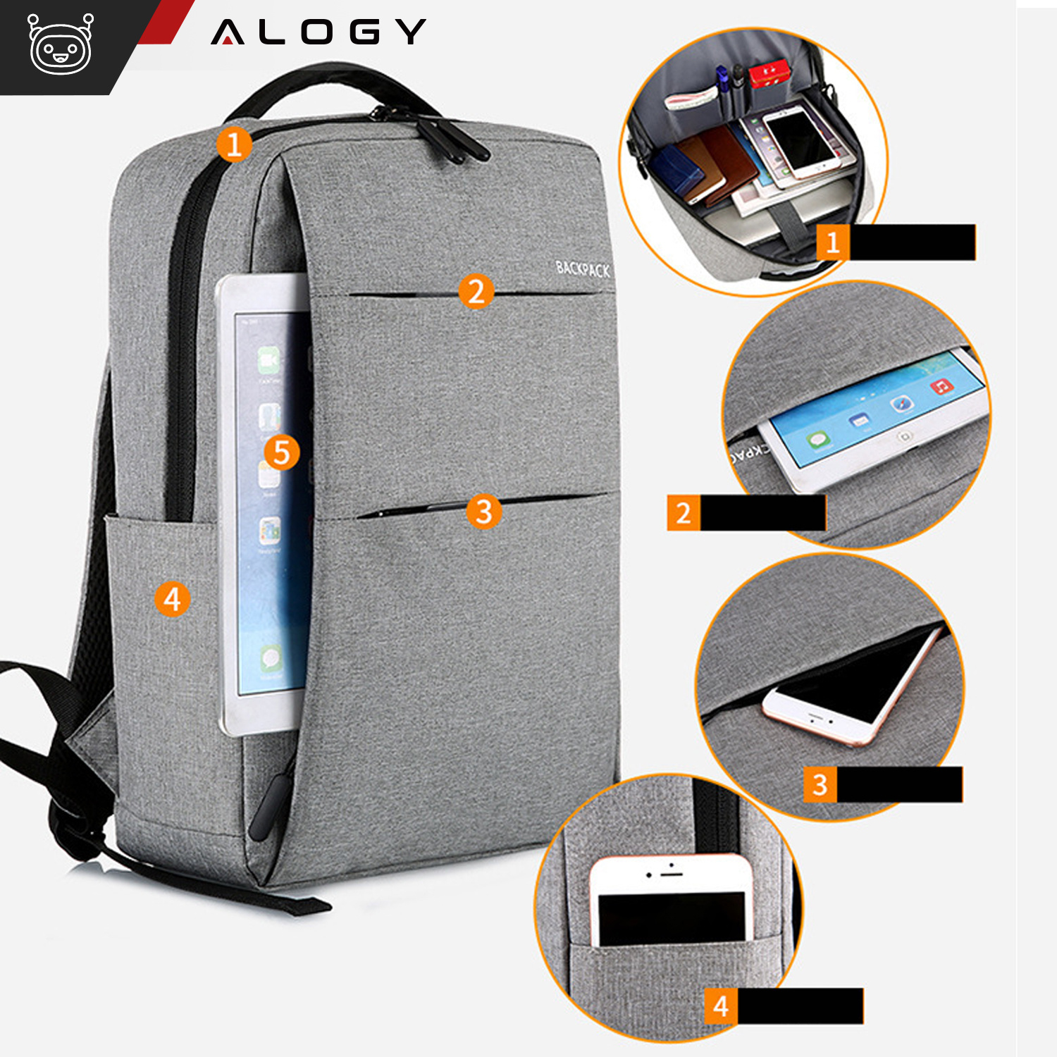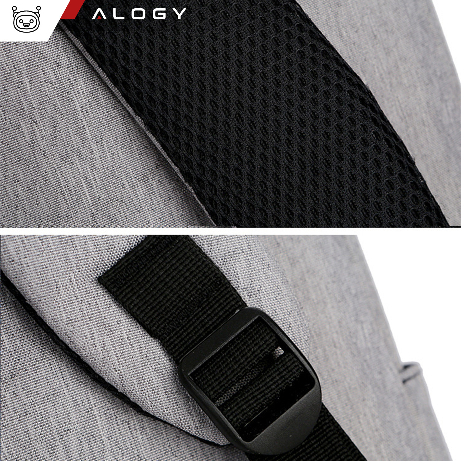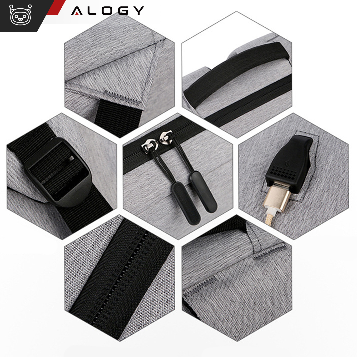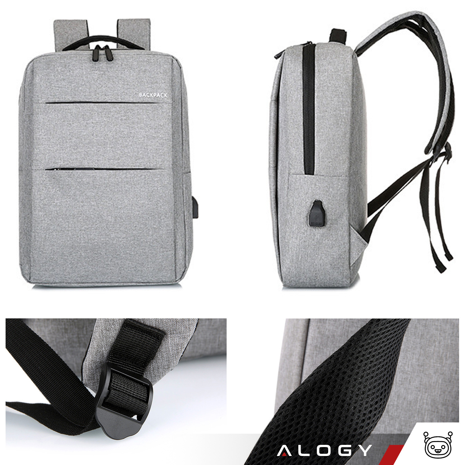 Opinie o Plecak torba na laptopa 15,6" duży wodoodporny z portem USB Unisex 44x34x13cm do samolotu Alogy Backpack Szary