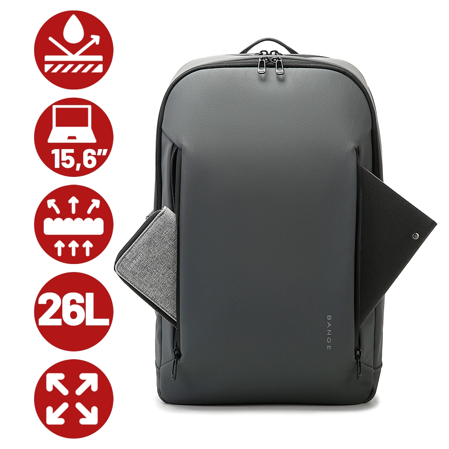 ▶️ Plecak wodoodporny Bange 26 l, miejski podróżny na laptopa do 15,6″ - Zawsze bezpieczny sprzęt