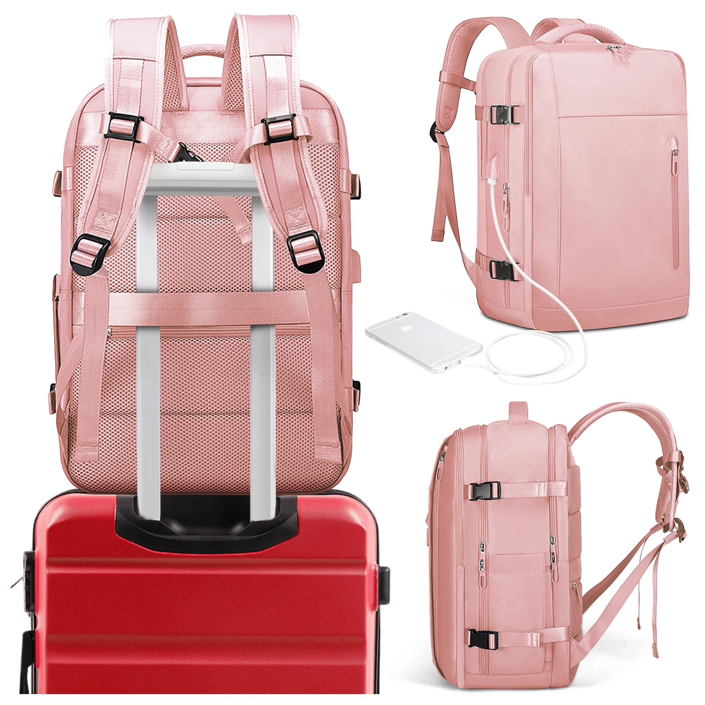 Opinie o Plecak wodoodporny Bange na laptopa 15.6" miejski podróżny 46x31.5x20 cm do pracy samolotu damski z z gniazdem USB Różowy