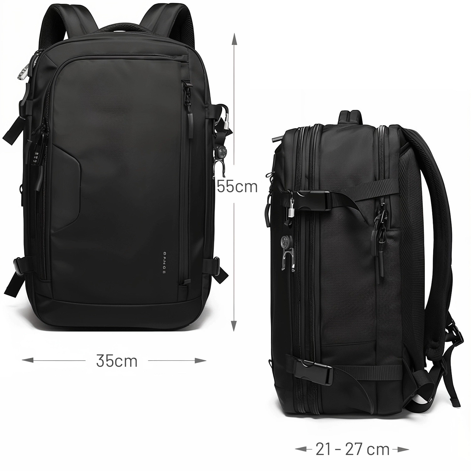 ⭐ Plecak podróżny wykonany jest z wodoodpornej tkaniny Oxford i pianki EVA, a wnętrze wyłożone poliestrem. Wentylowany tył oraz oddychające materiały zapewniają komfort, skutecznie redukując pocenie się i utrzymując skórę suchą nawet podczas długotrwałego noszenia i intensywnych aktywności.