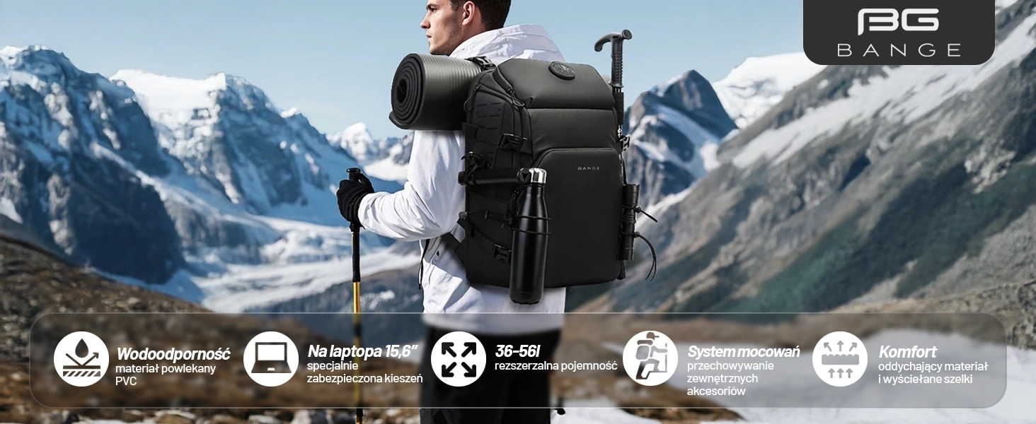 ▶️ Plecak outdoorowy Bange z systemem organizacji sprzętu 36–56 l, wodoodporny, na laptopa 15,6"