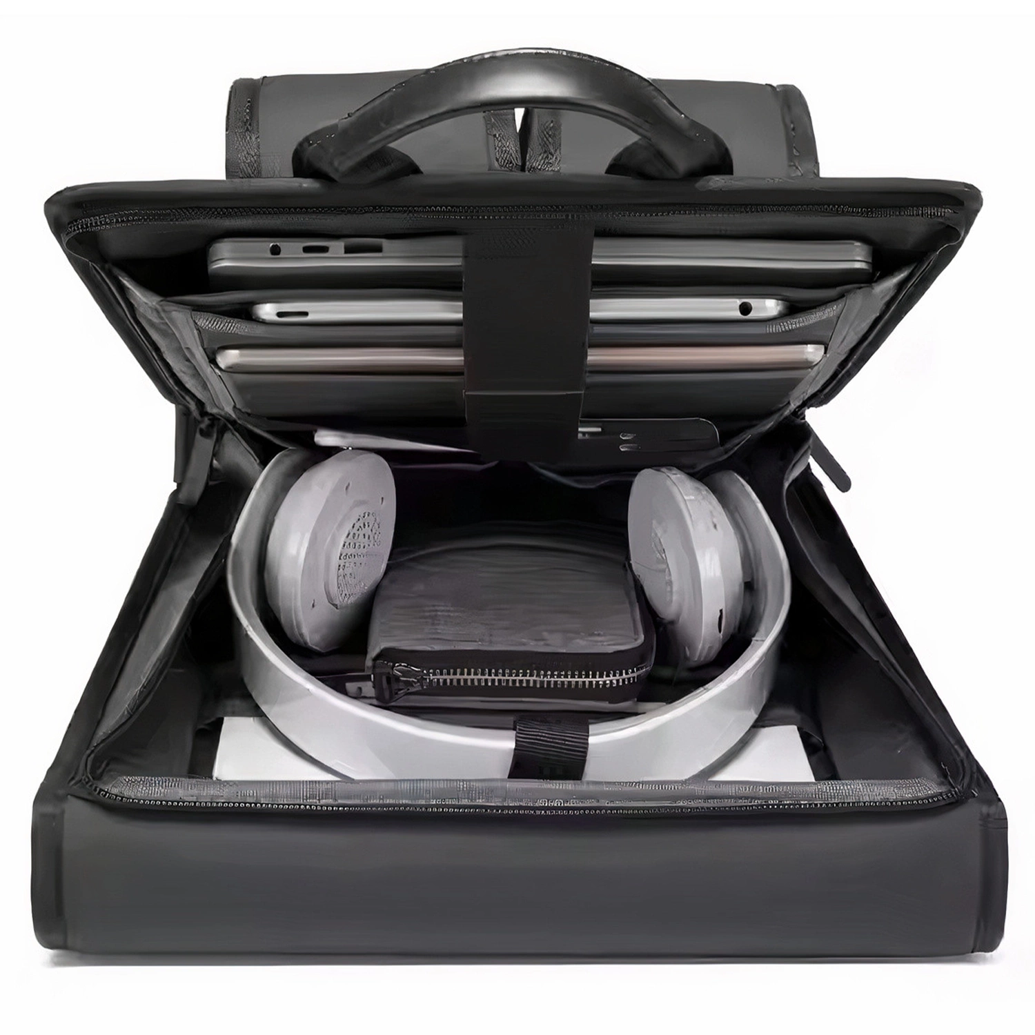 ⭐ Dla większej wygody użytkownika, plecak wyposażono we wzmocniony uchwyt do przenoszenia w ręce oraz specjalne zapięcie na słuchawki.