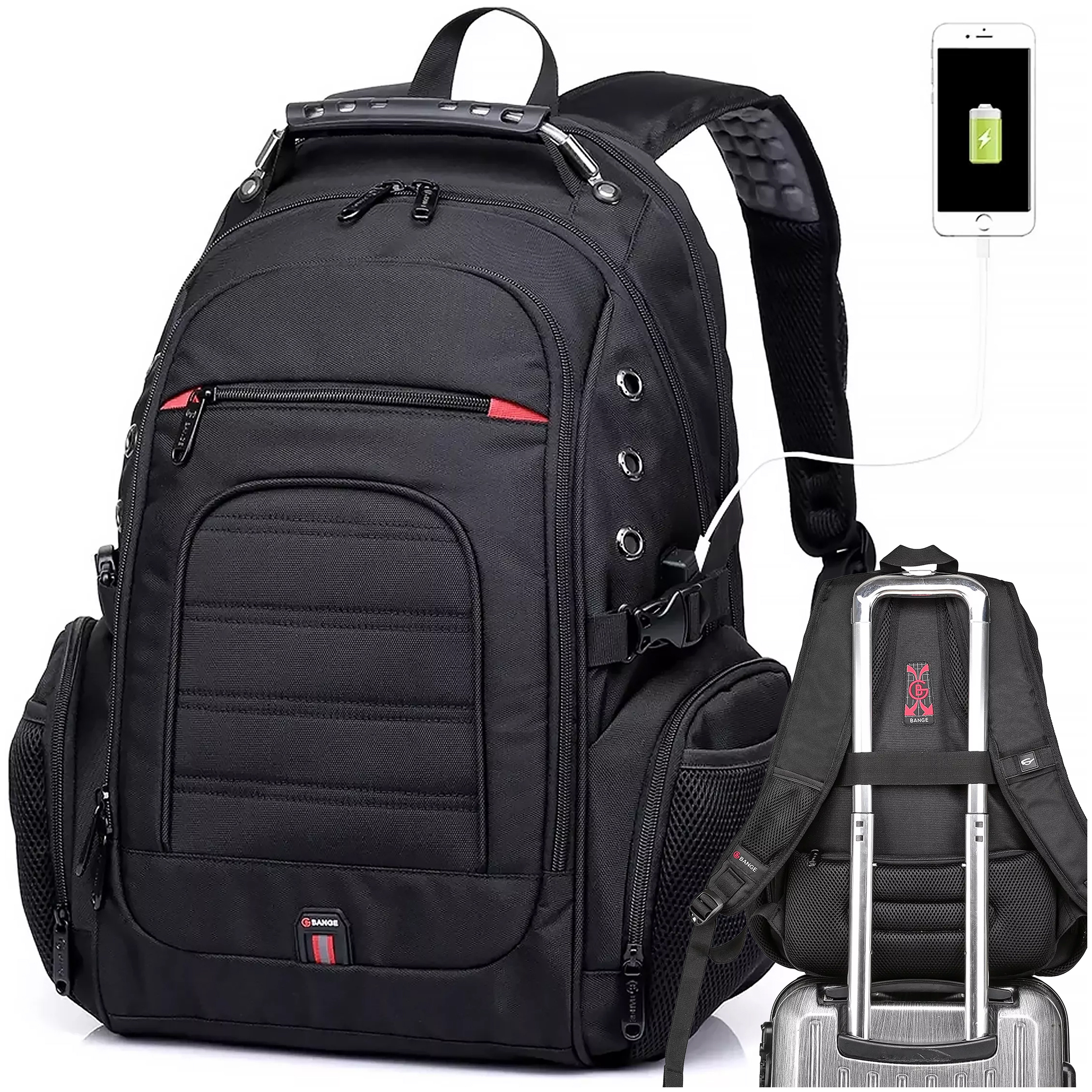 Opinie o Plecak wodoodporny Bange torba na laptopa 15" miejski podróżny 48x35x23 cm do pracy szkoły samolotu męski damski USB Czarny