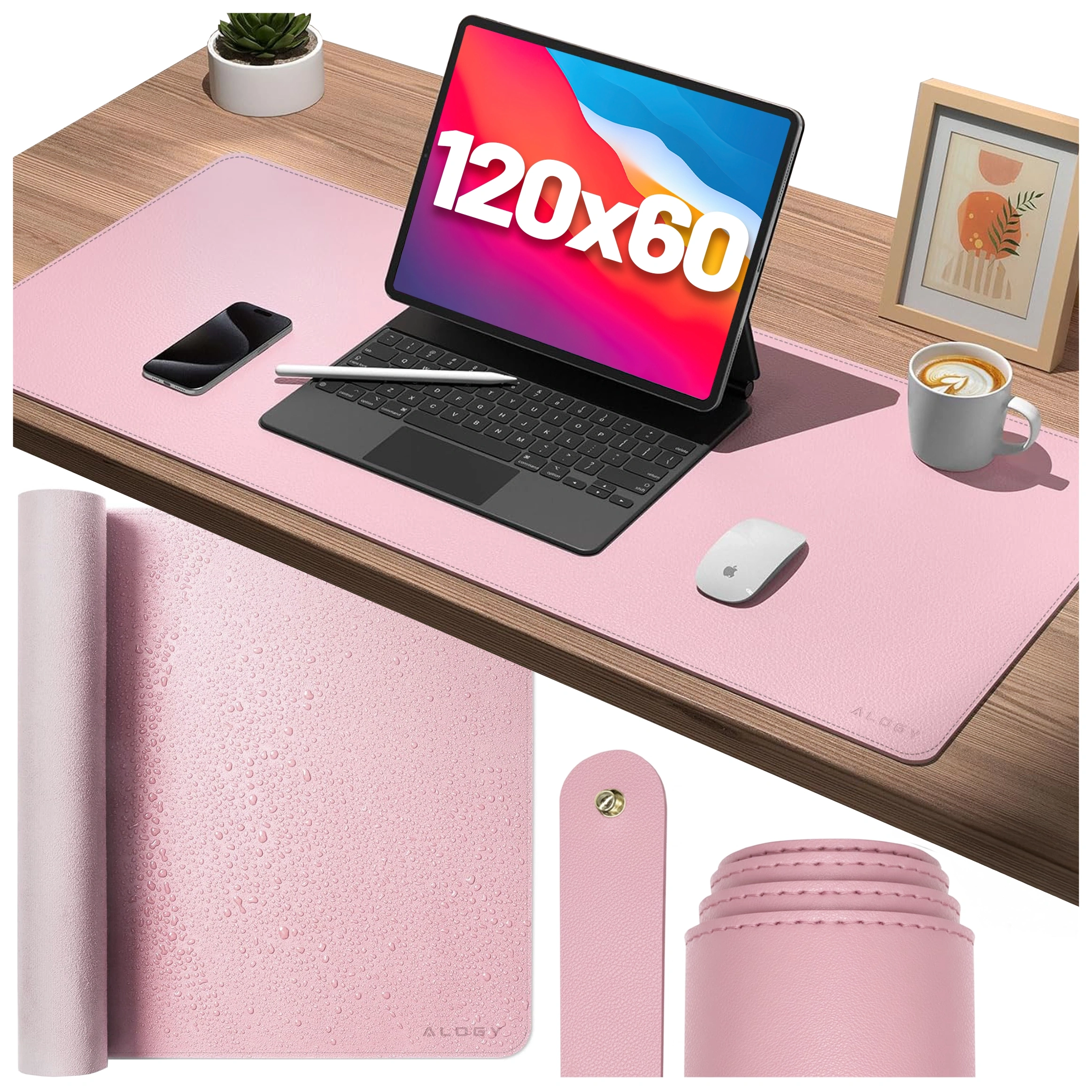 ▶️ Podkładka na biurko 120x60 cm Alogy WorkMat™ PU skóra Różowa - Zawsze czysty i estetyczny blat!