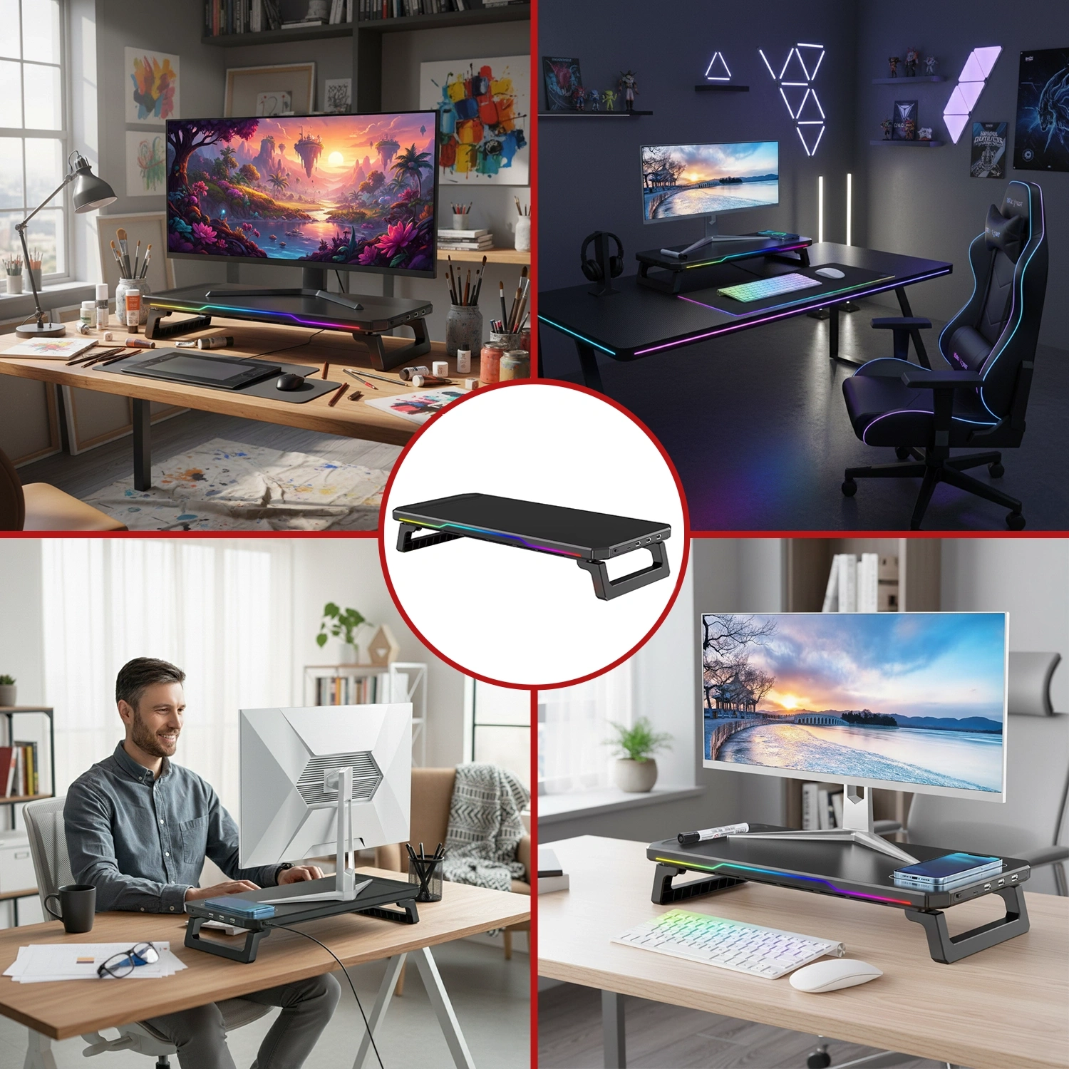 ▶️ Podstawka pod Monitor RGB Alogy z Portami USB-C i USB 2.0 | Wbudowane Efekty Świetlne