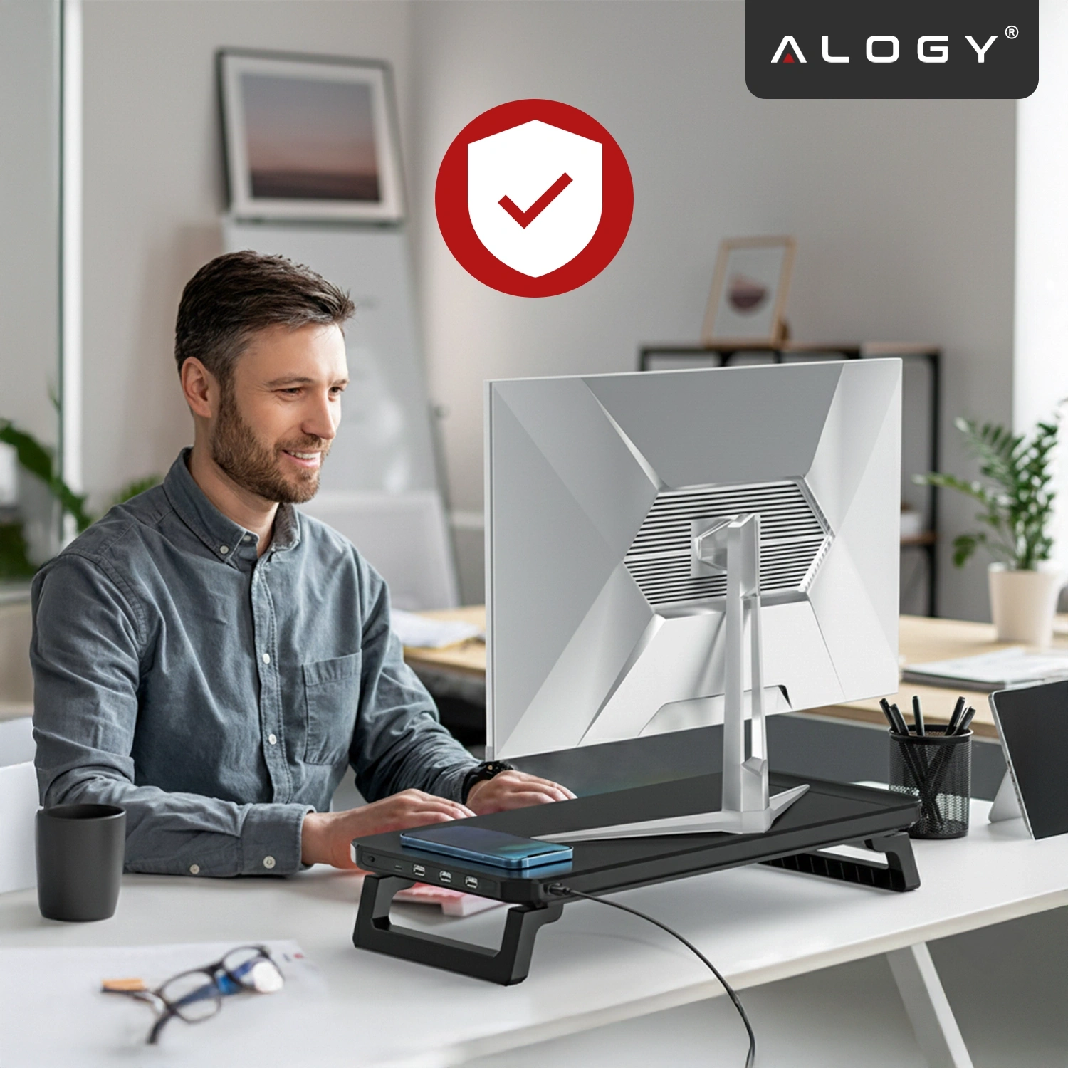 ✅ Dzięki trzem portom USB oraz portowi USB-C umożliwia łatwe podłączenie urządzeń, takich jak klawiatura, mysz czy pamięci USB. Zbudowana z wytrzymałego materiału ABS, nośność do 25 kg pozwala na bezpieczne umieszczenie monitora, komputera stacjonarnego i innych akcesoriów. Idealna dla osób szukających wydajnej, estetycznej i funkcjonalnej podstawki.