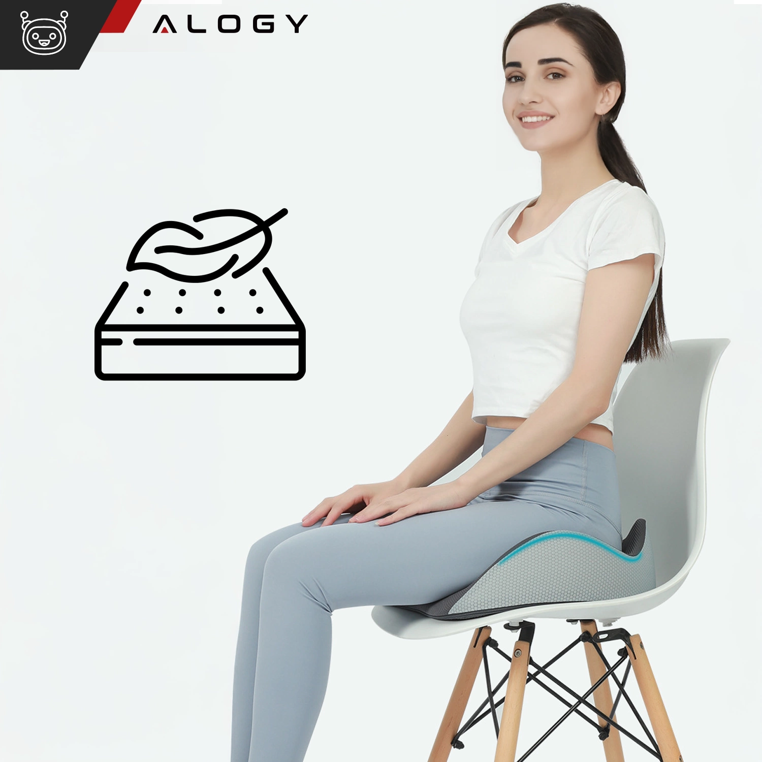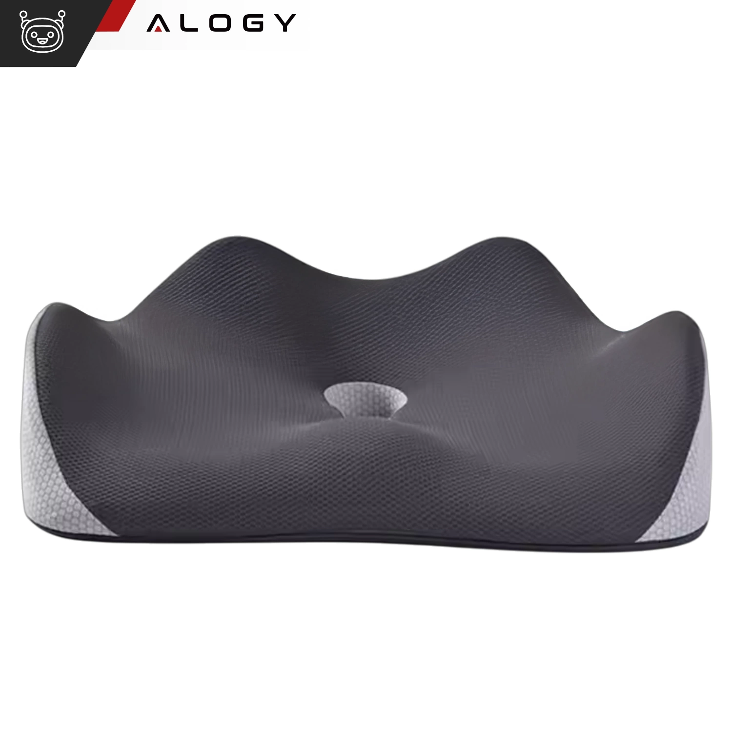 Poduszka ortopedyczna do siedzenia Alogy Seat Pillow do auta na krzesło do biurka siedzisko na fotel z pianką Memory Foam Czarno-szara