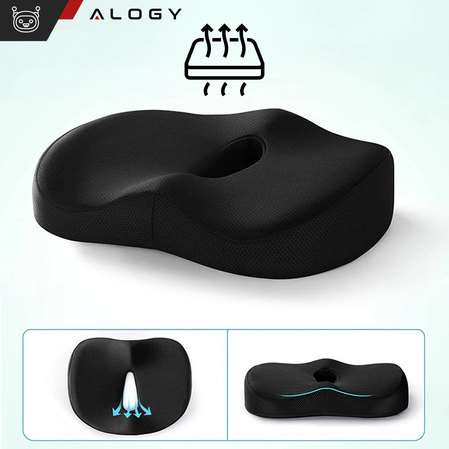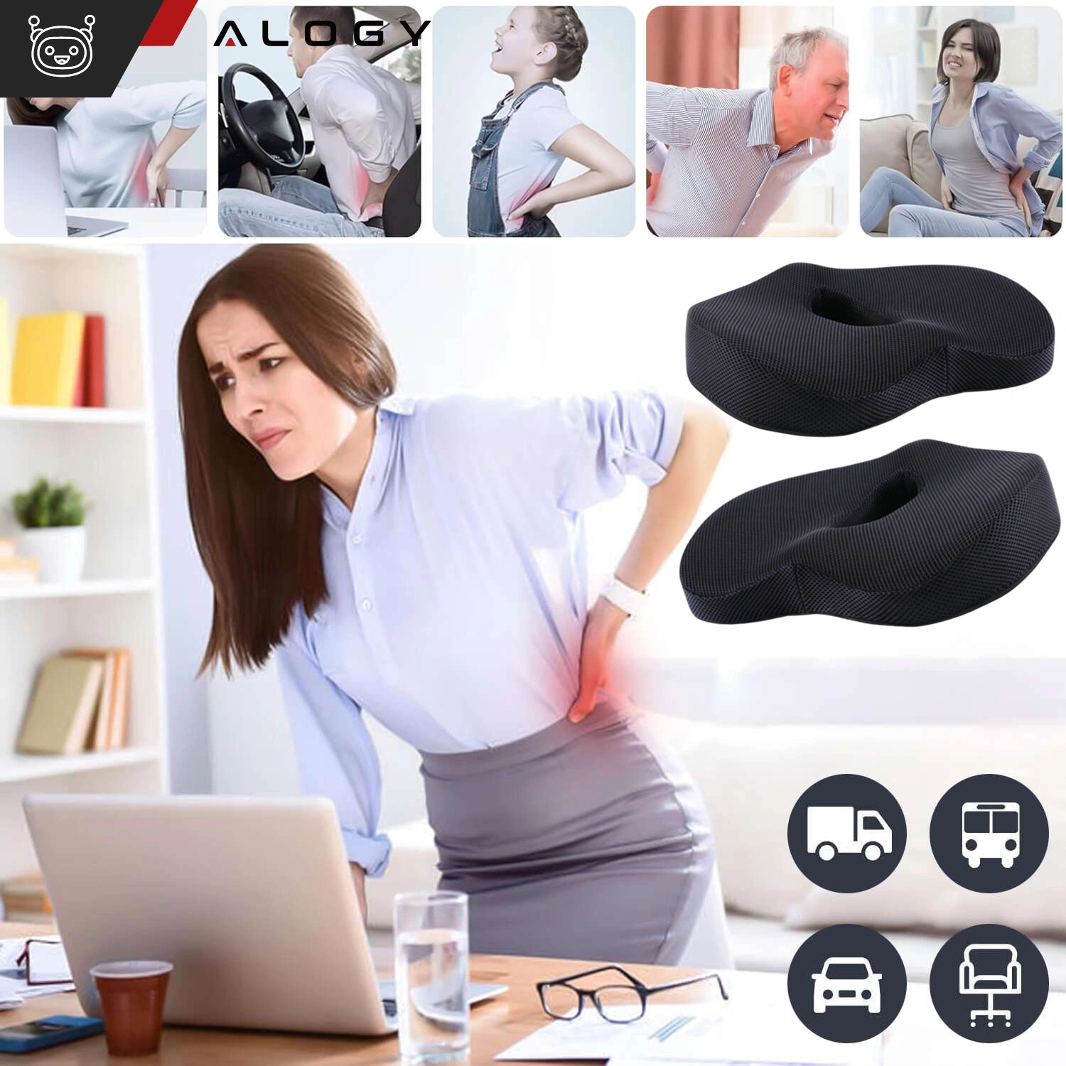 Poduszka ortopedyczna do siedzenia Alogy Seat Pillow do auta na krzesło do biurka siedzisko na fotel z pianką Memory Foam zapamiętująca Czarna
