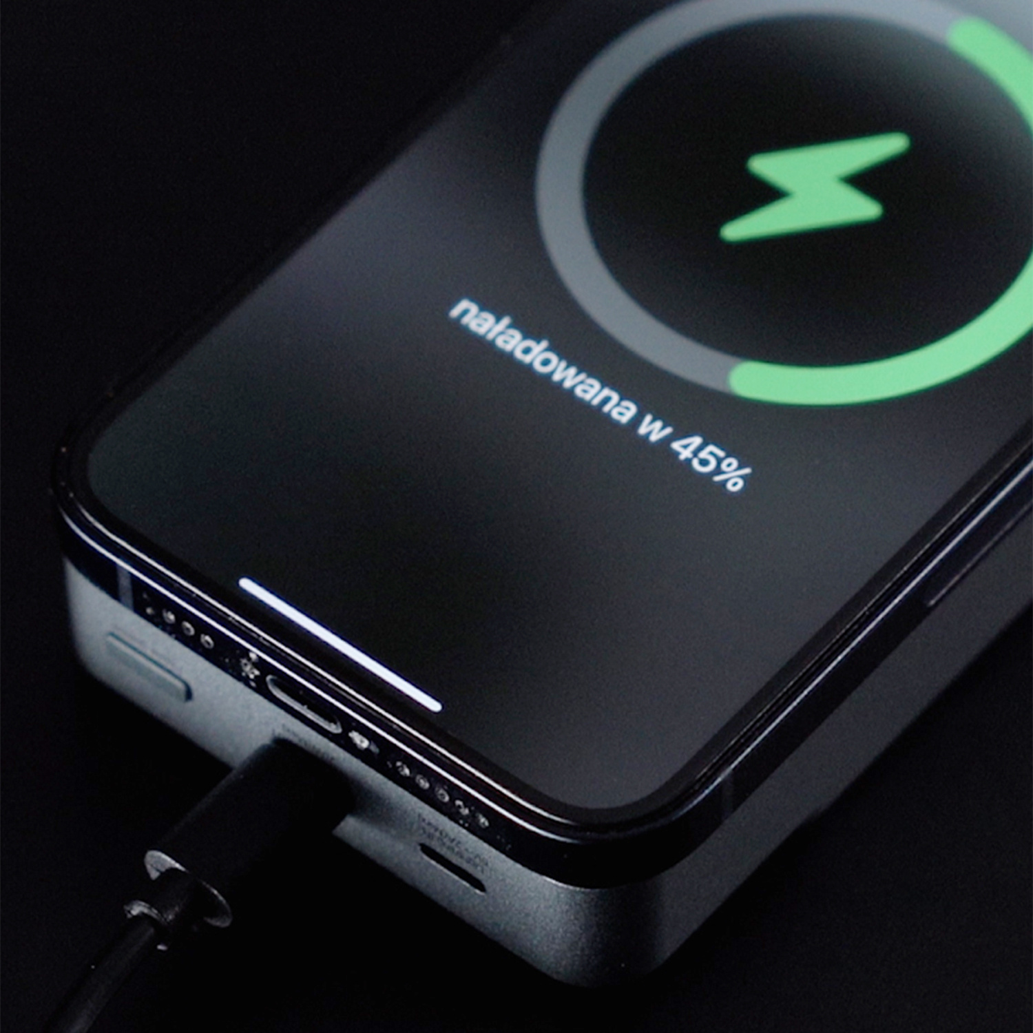 Nowoczesny powerbank MagSynergy™, stworzony z myślą o posiadaczach iPhone'ów z MagSafe oraz innych smartfonów z ładowaniem QI. To innowacyjne urządzenie łączy się bezprzewodowo z Twoim smartfonem, zapewniając ładowanie o mocy sięgającej 15W.