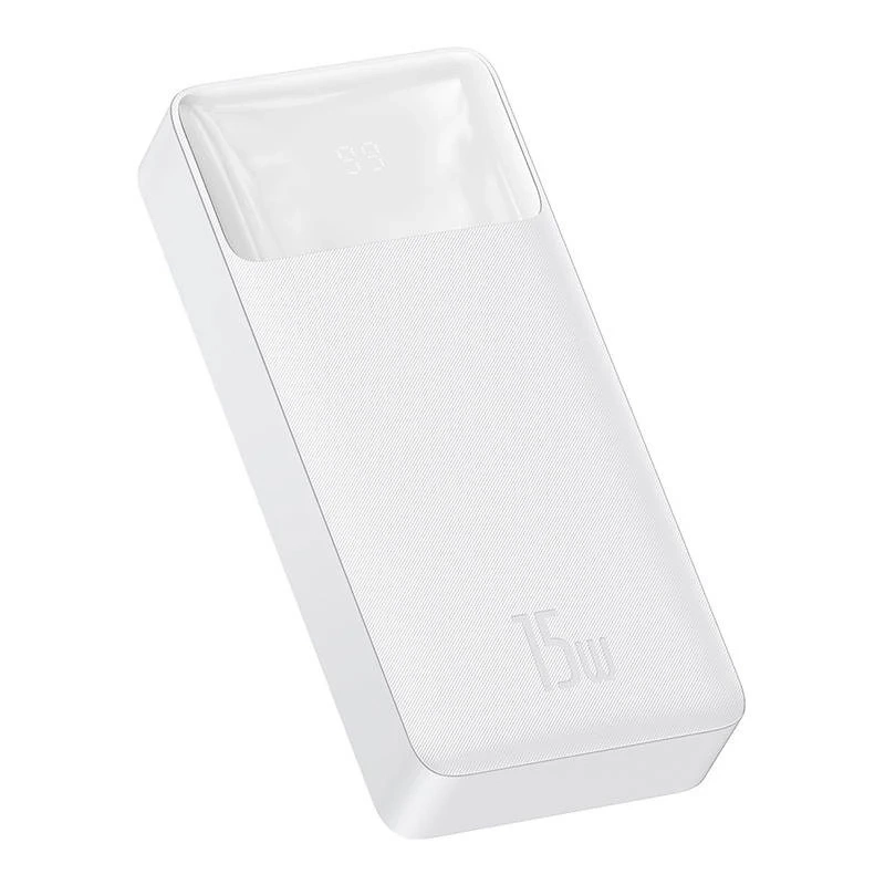Marka Baseus Model PPBD050102 Rozmiar 153 x 68,8 x 29,5 mm Bateria Polimerowo-litowa Pojemność 20000 mAh / 3,7V 74Wh Kolor biały Wykończenie ABS+PC Pojemność znamionowa 12000 mAh Współczynnik konwersji energii ≥75% Wejście Micro: 5V/2A, Type-C: 5V/3A Wyjście USB1/USB2: 5V/3A, Type-C: 5V/3A, USB + Type-C: 5V/3A Max.