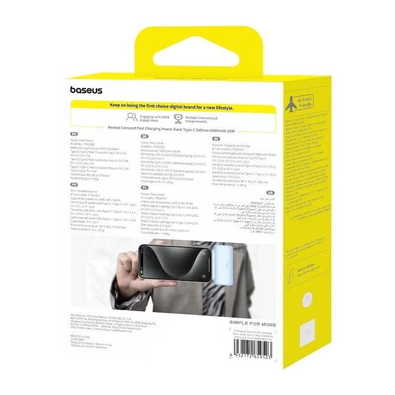 Baseus Compact to funkcjonalny powerbank o pojemności 5000 mAh, zaprojektowany z myślą o użytkownikach ceniących wygodę i mobilność. Kompaktowa forma, lekka konstrukcja i wbudowane złącze USB-C czynią go idealnym kompanem w każdej podróży i codziennym użytkowaniu.
