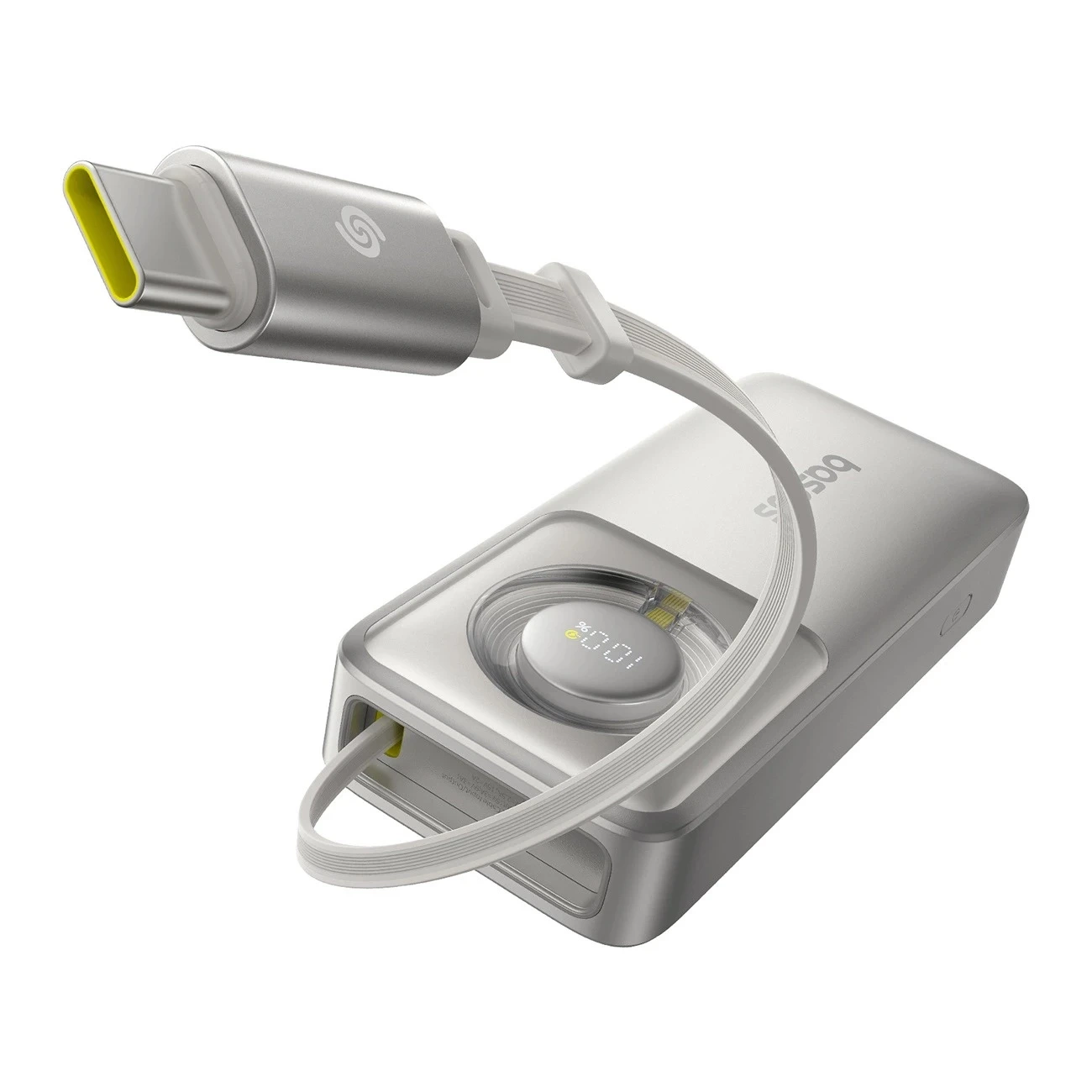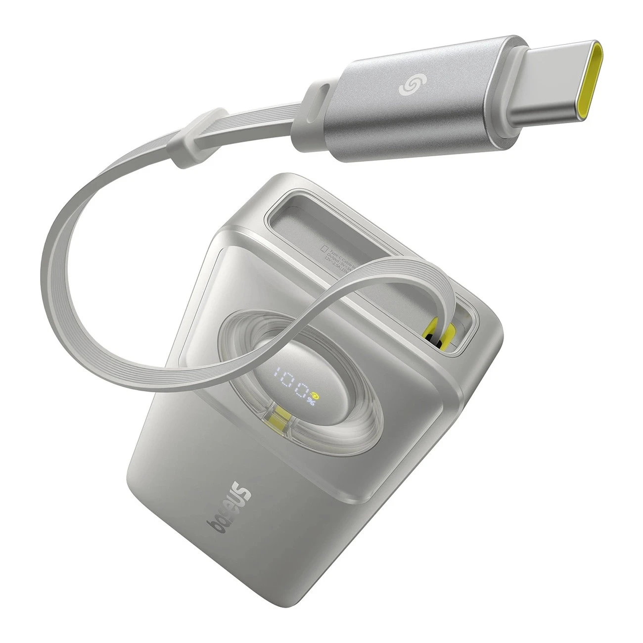 Powerbank Baseus Free2Pull o pojemności 10000 mAh i mocy do 30W z portem USB-C i rozwijanym kablem USB-C - szary