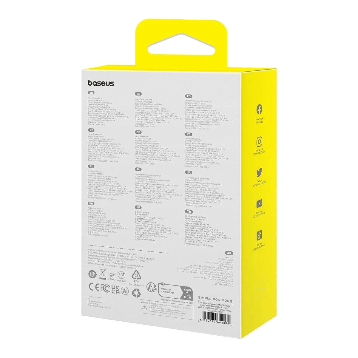 Powerbank Baseus Magnetic Mini MagSafe 10000mAh 30W z wbudowanym kablem USB-C - żółty + kabel Baseus Simple Series USB-C - USB-C 60W 0.3m Zapomnij o poszukiwaniu gniazdka, kiedy jesteś w ruchu. Prezentujemy Baseus Magnetic Mini Wireless Fast Charge Power Bank – przyszłość mobilnego ładowania. Jego kompaktowe rozmiary kryją w sobie moc 10000mAh i wydajność 30W, zapewniając szybkie ładowanie zarówno bezprzewodowe dla urządzeń MagSafe i Qi, jak i przewodowe dzięki wbudowanemu kablowi USB-C. Technologia Power Delivery i Quick Charge 3.0 gwarantuje efektywność i wszechstronność, a dołączony kabel USB-C to dodatkowa wygoda.