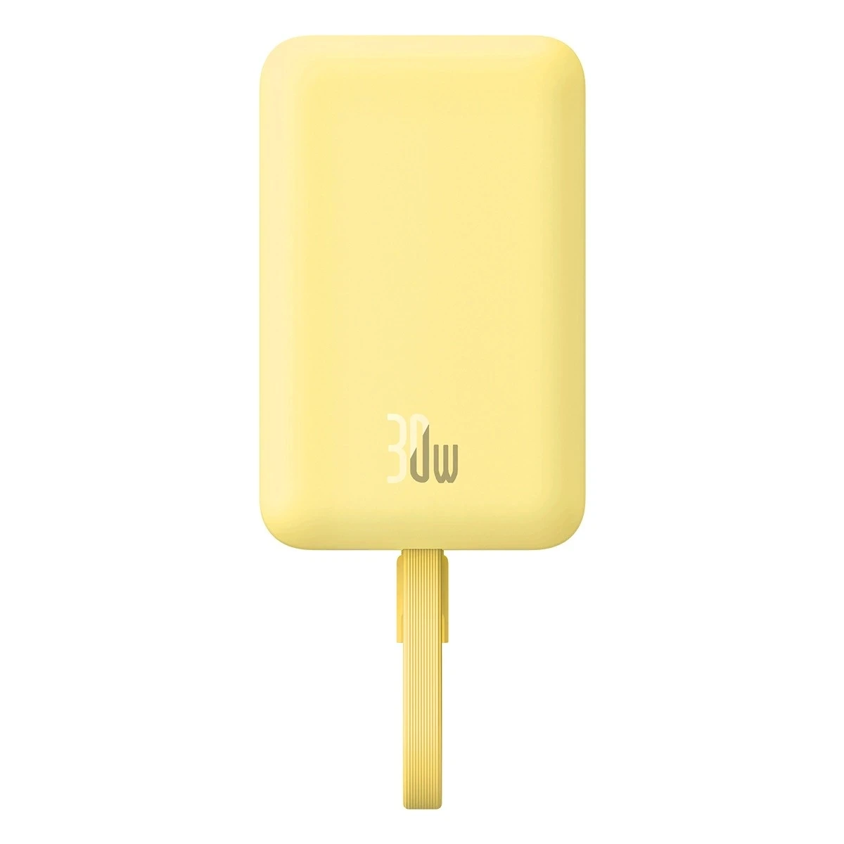 Powerbank Baseus Magnetic Mini MagSafe 10000mAh 30W z wbudowanym kablem USB-C - żółty + kabel Baseus Simple Series USB-C - USB-C 60W 0.3m Powerbank Baseus Magnetic Mini MagSafe 10000mAh 30W z wbudowanym kablem USB-C w kolorze żółtym zapewnia mobilne ładowanie na najwyższym poziomie. Oferuje szybkie ładowanie bezprzewodowe do 15W dla urządzeń MagSafe i Qi oraz przewodowe dzięki technologii P Kup 8 szt. , oszczędź 20 % - 167,92 zł / szt.