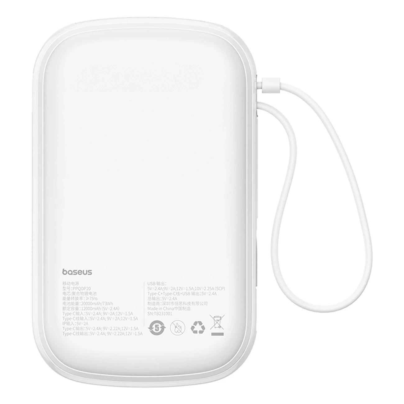 Powerbank Baseus QPow Pro+ o pojemności 20000 mAh, mocy do 22.5W z wyświetlaczem i wbudowanym kablem USB-C - biały