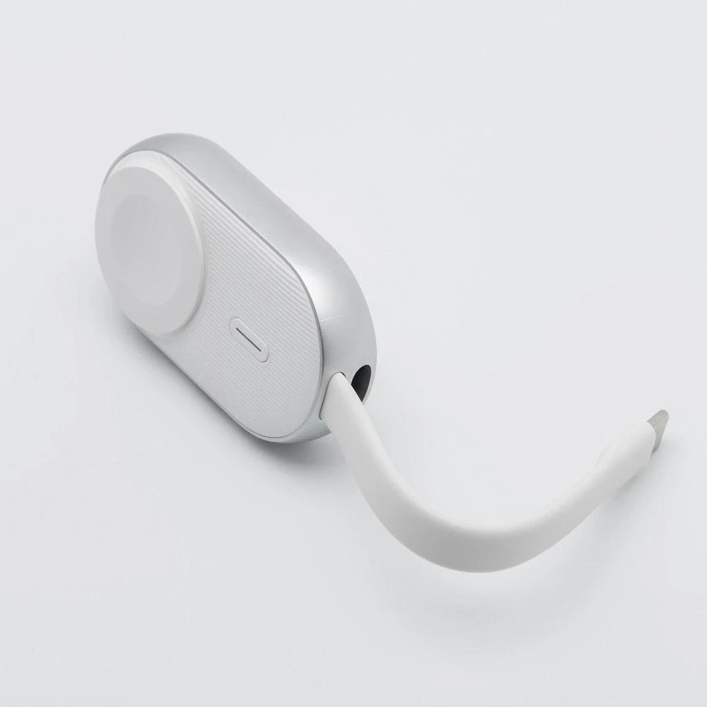 Pojemność 1200 mAh wystarcza na nawet trzykrotne ładowanie Apple Watcha. Bezprzewodowe pole ładujące o mocy 2,5 W działa niezawodnie, gdy zegarek potrzebuje energii. Nie musisz szukać gniazdka – wszystko masz pod ręką.