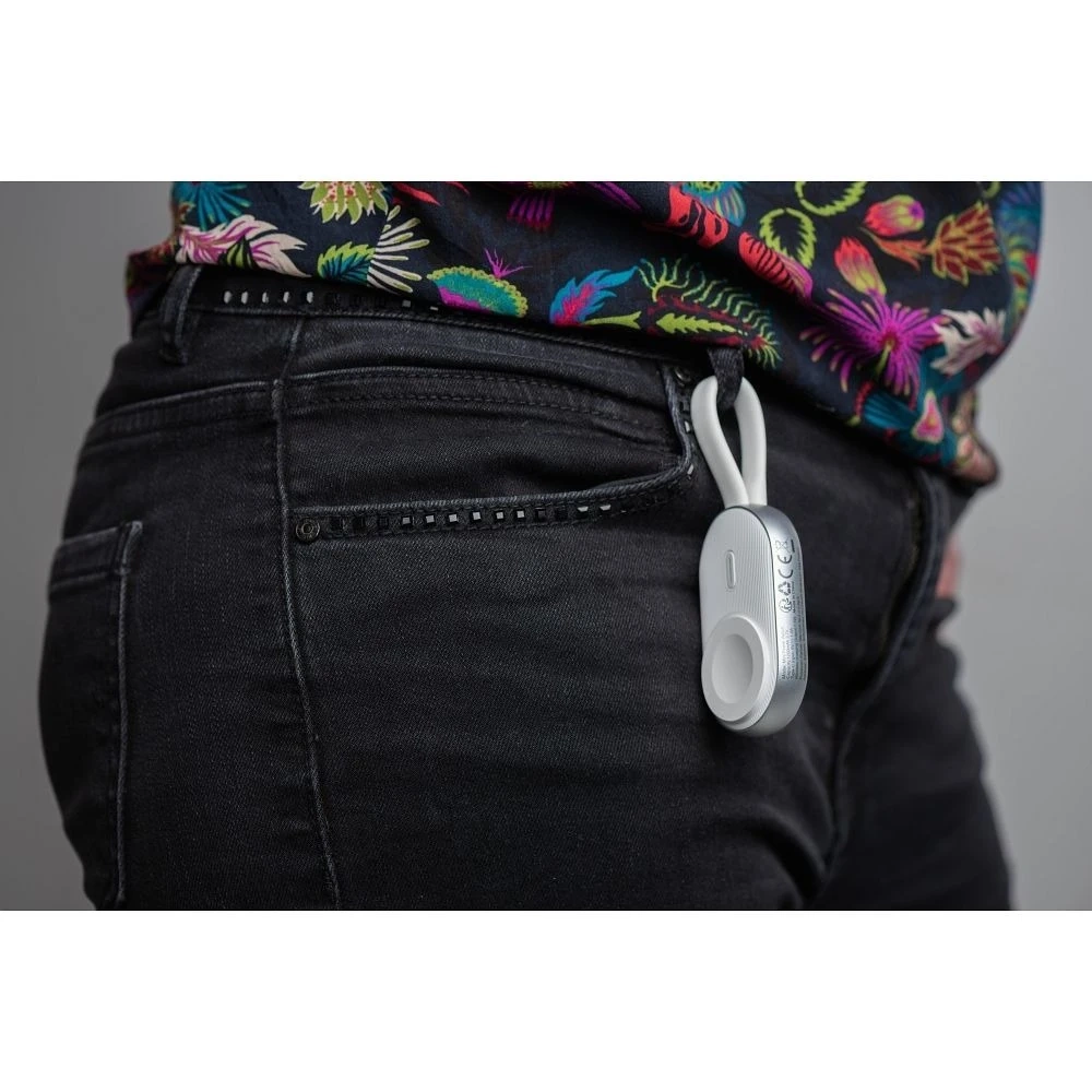 Powerbank ma wbudowany kabel USB-C, który pełni także rolę zawieszki – możesz przypiąć go do torby, plecaka czy etui. Gdy potrzebujesz energii – po prostu podłącz.