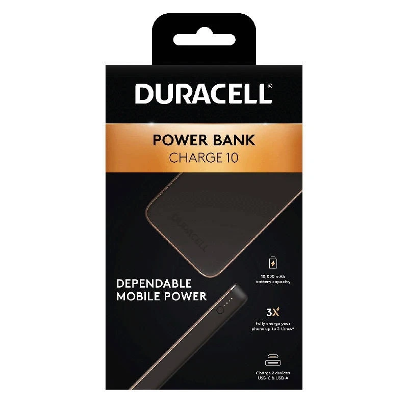 Producent Duracell Model DRPB3010A Porty USB-A; USB-C Moc Wyjściowa 18 W Pojemnoś akumulatora 10000 mAh