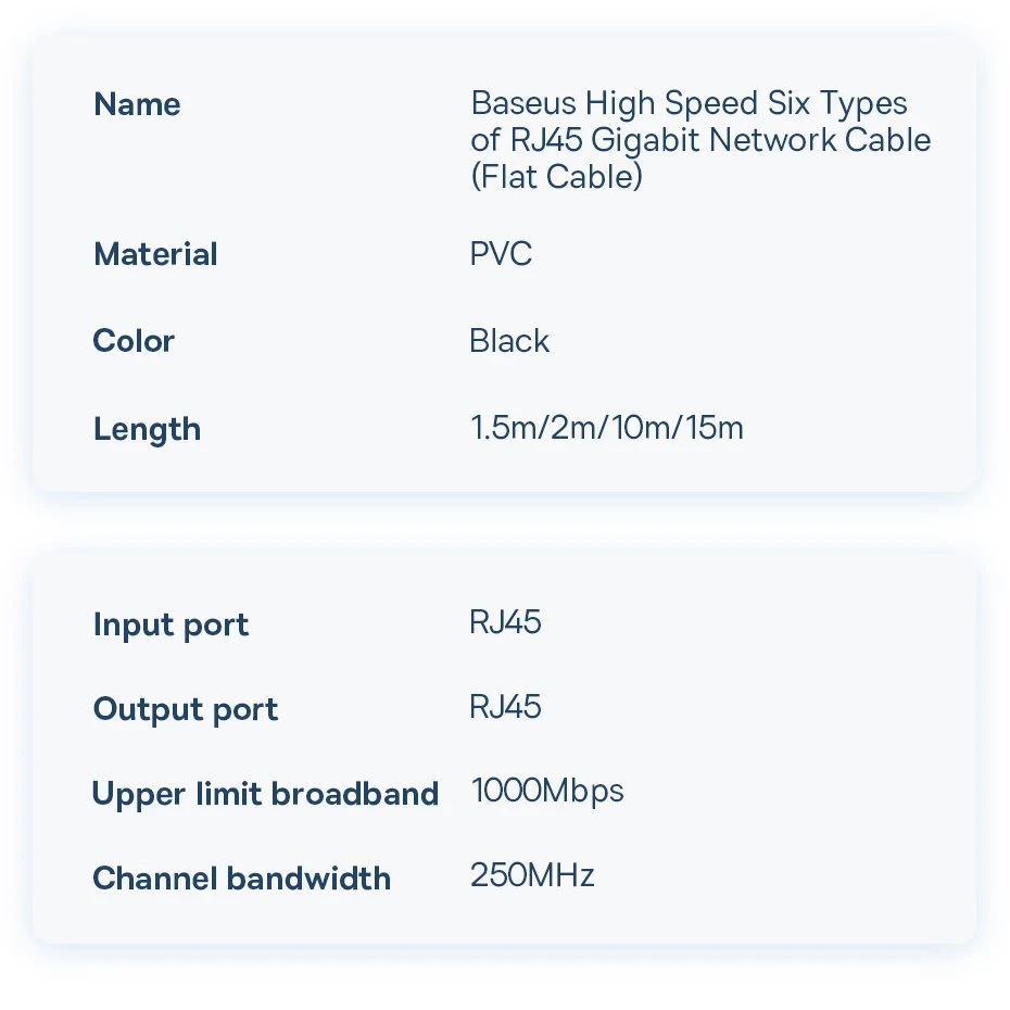 Patchcordy firmy Baseus wykorzystasz przy połączeniach urządzeń aktywnych i pasywnych w sieciach LAN, Ethernet, w przemyśle, domu i biurze. Przechodzą przez rygorystyczne testy aby sprostać wymaganiom kategorii 6. Zapewnia to wysokie parametry transmisji i prędkość przesyłu danych na poziomie 1 Gbps.