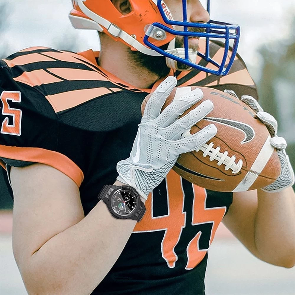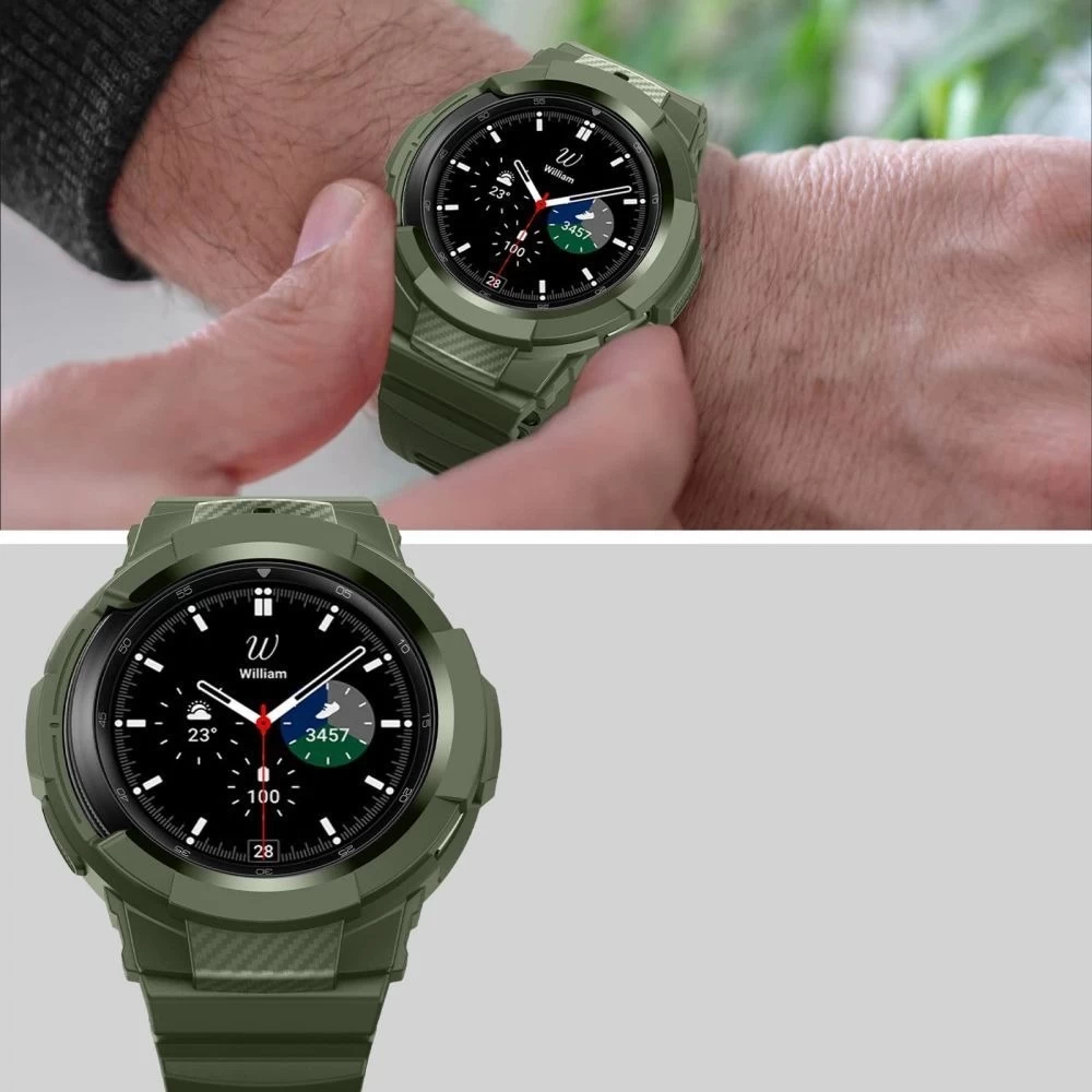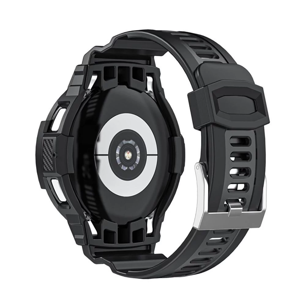 Prosta w montażu i demontażu ramka oplatająca Twojego Watch'a umożliwia dostęp do wszystkich przycisków sterujących i czujników oraz ładowanie bez konieczności zdejmowania etui. Podwyższone krawędzie ochronią ekran przed zarysowaniami i wstrząsami, a regulowany pasek pozwala na proste i szybkie dopasowania opaski do szerokości nadgarstka.