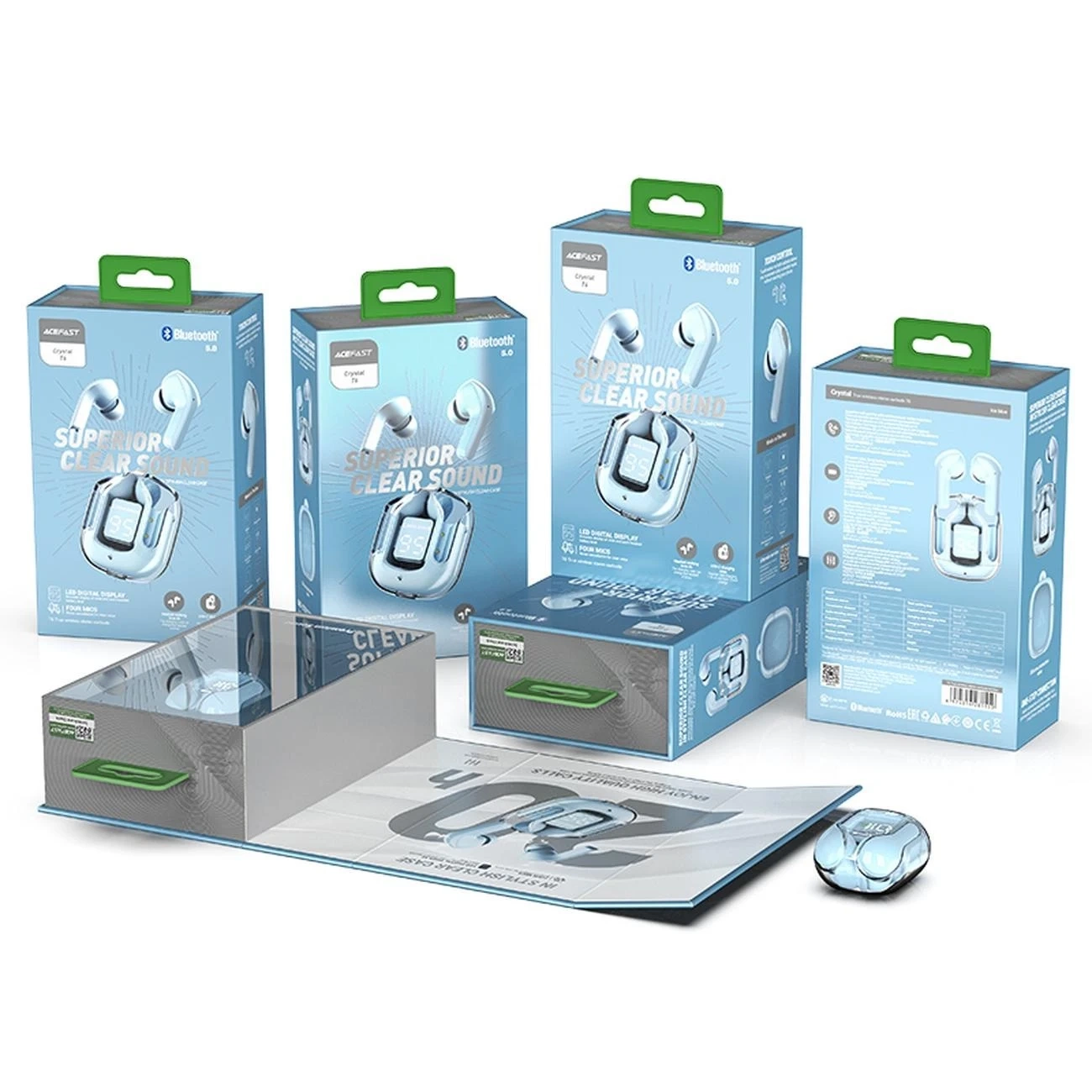 Dokanałowe słuchawki bezprzewodowe Acefast TWS z technologią Bluetooth 5.0 i klasą wodoodporności IPX4 – jasnoniebieskie (T6) + etui