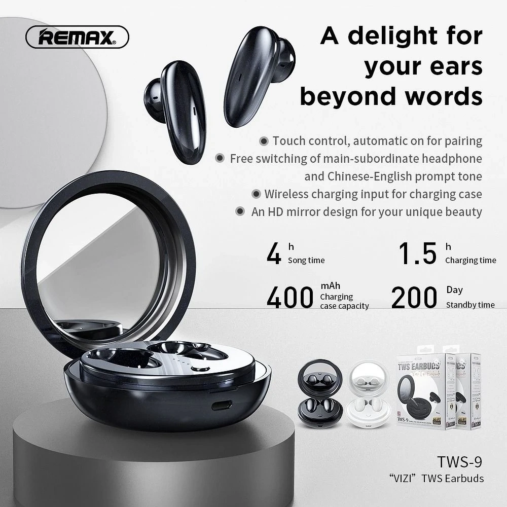 Bezprzewodowe słuchawki Bluetooth REMAX TWS-9 w eleganckim białym kolorze to idealne rozwiązanie dla osób ceniących doskonałą jakość dźwięku, nowoczesny design i funkcjonalność. Dzięki zaawansowanej technologii Bluetooth 5.0 zapewniają stabilne połączenie i wygodę użytkowania. Oto, co oferują: