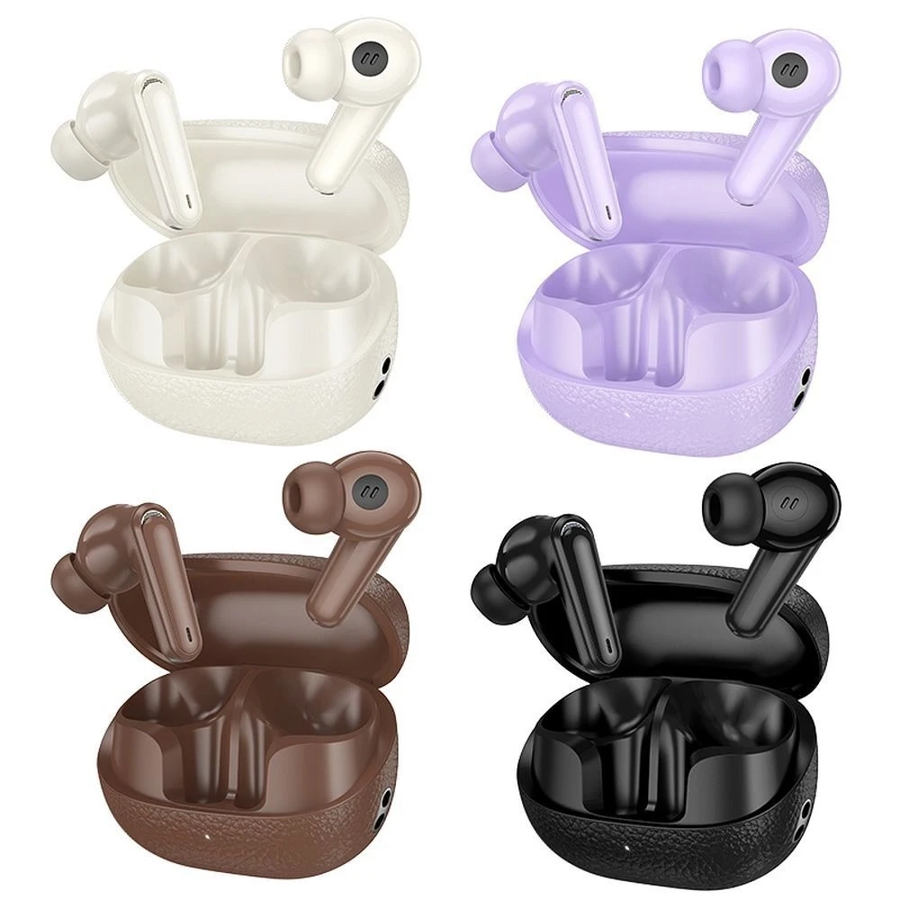 Słuchawki bezprzewodowe HOCO TWS EQ23 w stylowym brązowym kolorze to połączenie komfortu, nowoczesnej technologii i wysokiej jakości dźwięku. Dzięki Bluetooth 5.4 i chipowi JLAC6973D4, słuchawki zapewniają szybkie i stabilne połączenie, które pozwala cieszyć się muzyką, audiobookami oraz prowadzić rozmowy przez długi czas. Ergonomiczny design gwarantuje wygodę, nawet podczas długotrwałego użytkowania, a kompaktowe etui ładujące zapewnia pełną mobilność.