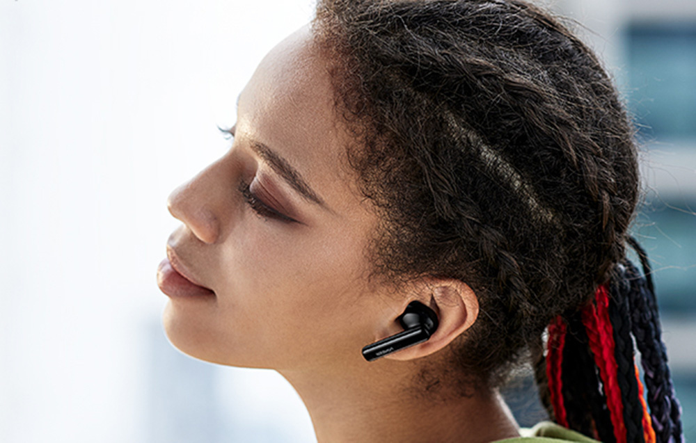 Martwisz się, że słuchając muzyki, przeoczysz istotny komunikat na dworcu lub nie usłyszysz, gdy ktoś do Ciebie mówi? Możesz skorzystać z funkcji Ambient Sound i pozostać w kontakcie z otoczeniem. Tryb ten uruchomisz, przytrzymując prawą słuchawkę przez 2 sekundy.