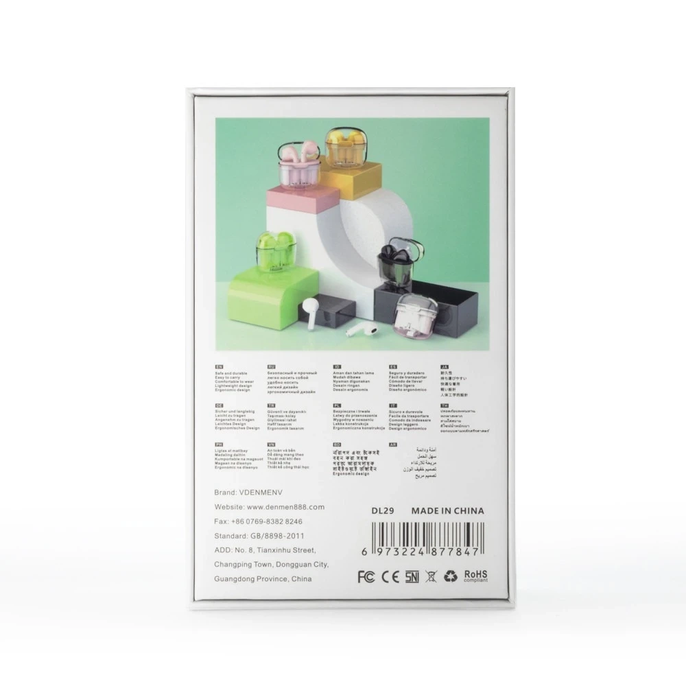 Odkryj swobodę słuchania muzyki dzięki bezprzewodowym słuchawkom Denmen DL29 TWS. Zaprojektowane z myślą o wygodzie, nowoczesnym designie i najwyższej jakości dźwięku, spełniają oczekiwania najbardziej wymagających użytkowników. Idealne do codziennego użytku, treningów, spacerów i podróży.