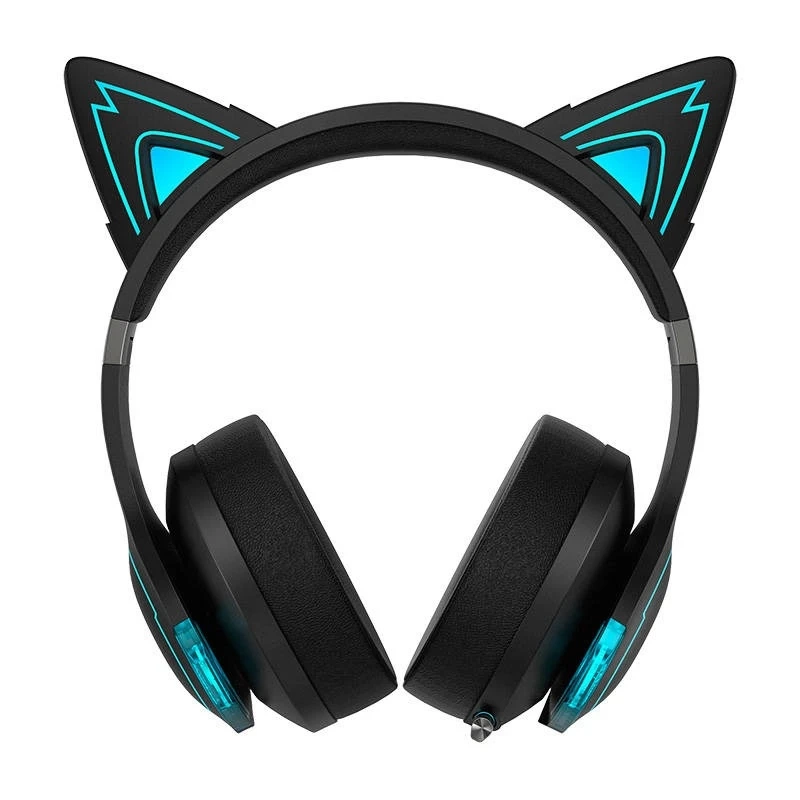 Słuchawki G5BT to idealna kombinacja funkcjonalności i stylu. W zestawie znajdziesz przyjemne w dotyku, silikonowe kocie uszy, które z łatwością zamontujesz lub zdemontujesz dzięki wbudowanym magnesom. Na uwagę zasługuje także dynamiczne podświetlenie RGB, którego charakter możesz dostosować do swoich upodobań, wybierając spośród 8 dostępnych trybów. Światło stałe, pulsujące, a może wielokolorowy gradient? Co więcej, podświetlenie włączy się automatycznie, gdy przymocujesz kocie uszy do słuchawek.