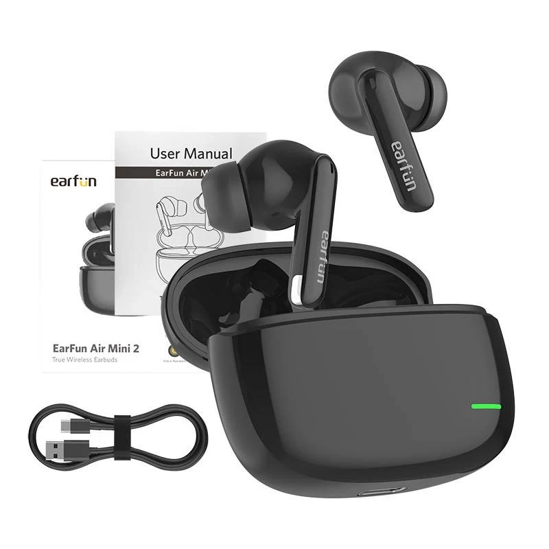 Producent EarFun Model AirMini 2 (TW203) Kolor Czarny Przetworniki 10 mm Czas pracy Do 6 h Do 24 h z etui ładującym Waga słuchawki 3.8 g