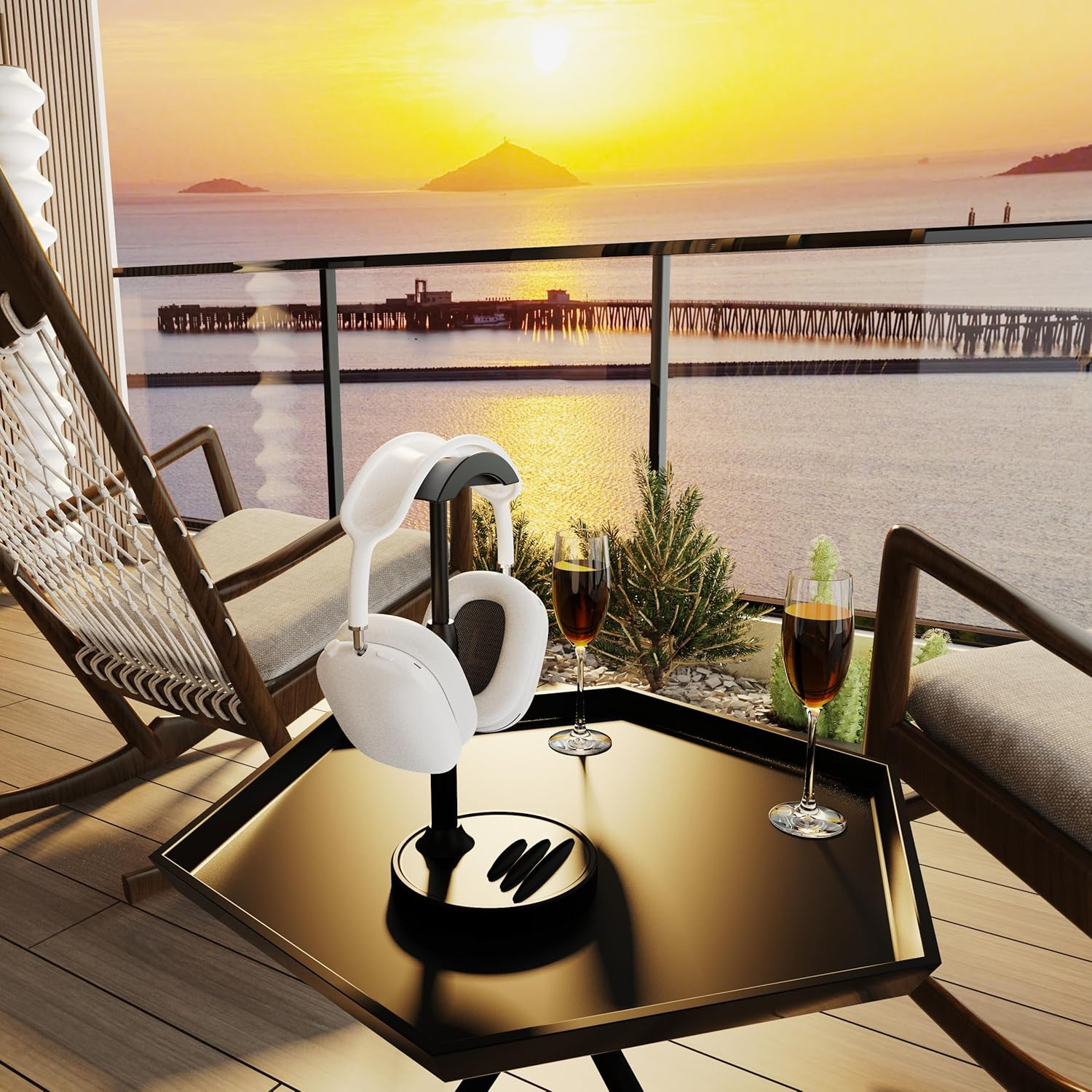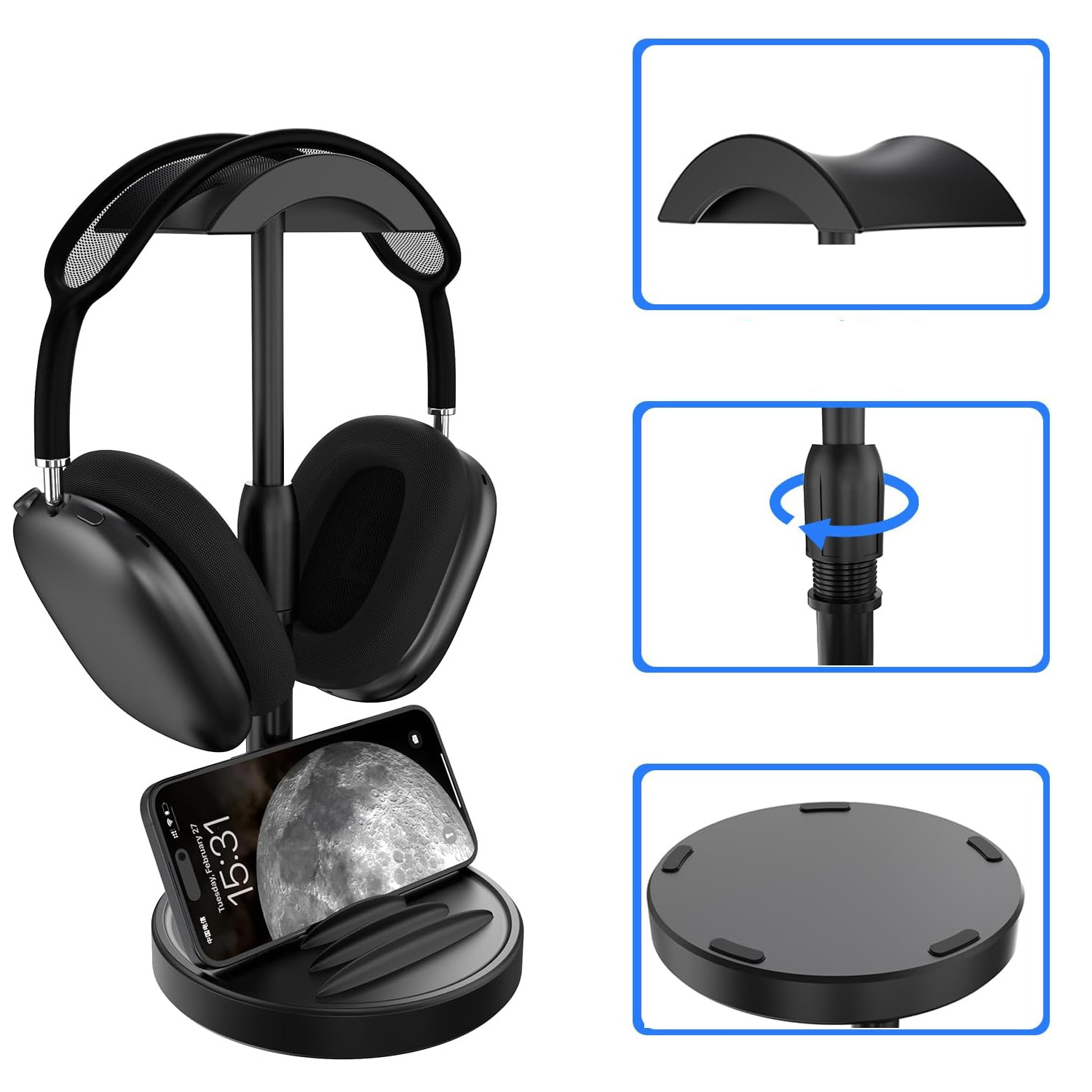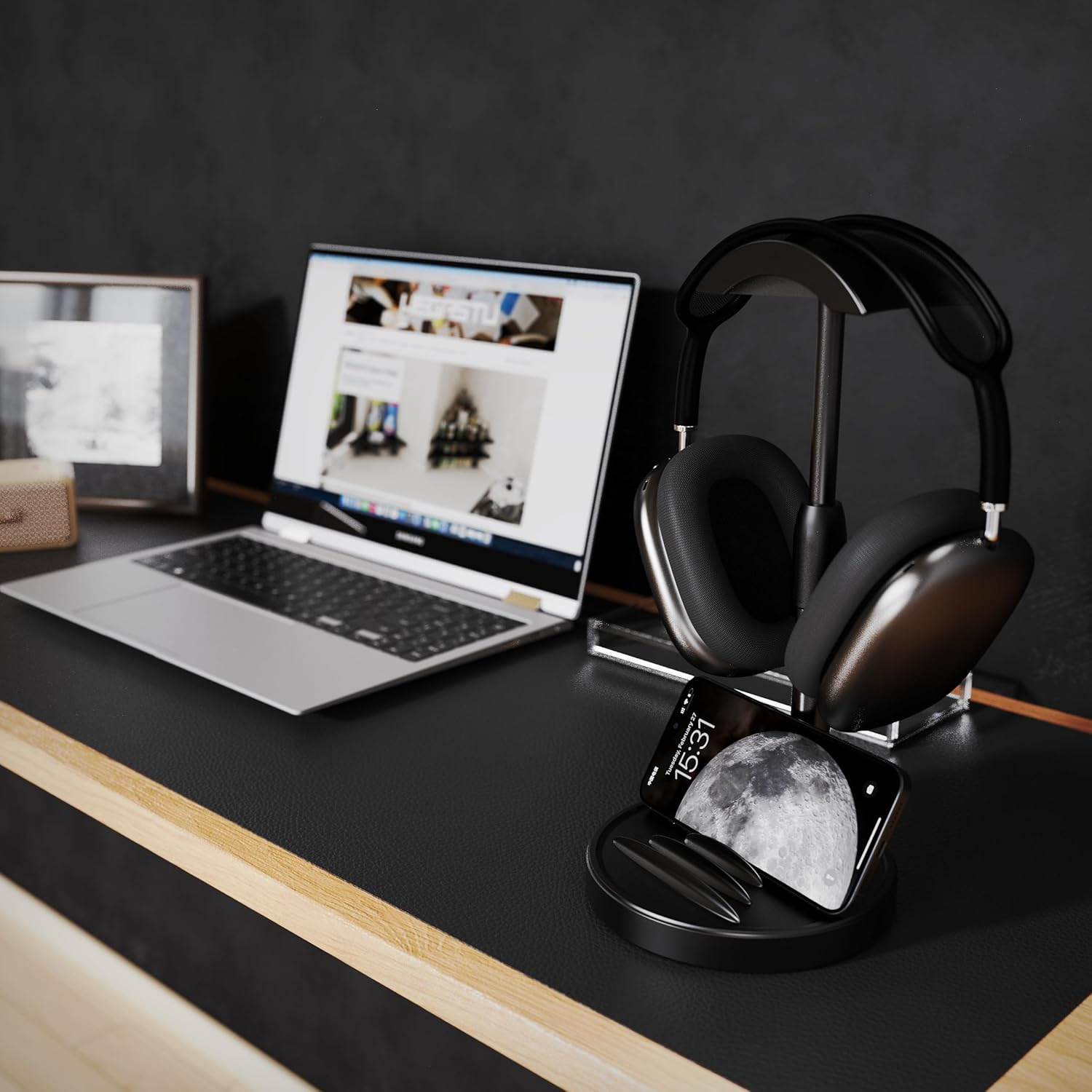 ⭐ Zintegrowany design łączy w sobie wieszak na słuchawki nauszne oraz podstąwkę na telefon czy też tablet.