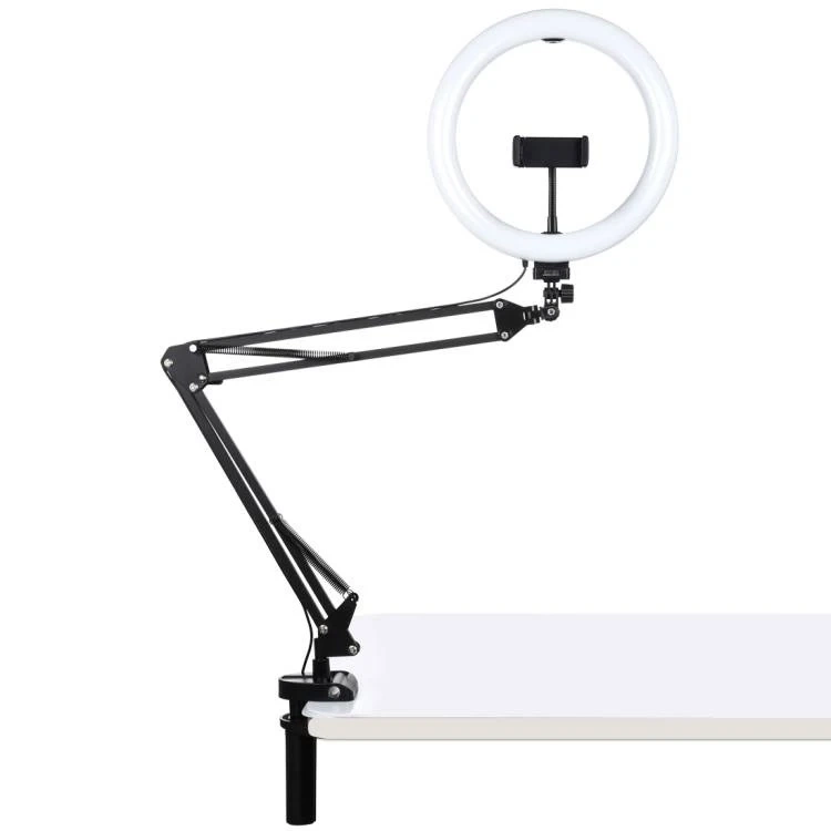 Możesz dostosować wysokość stojaka, który ma także regulację o 180 i 360 stopni, co zwiększa komfort użytkowania. Został wykonany z wysokiej jakości materiału, dzięki czemu jest trwały i wytrzymały. Podwójne sprężyny zawieszenia na każdym ramieniu wysięgnika chronią lampy przed nagłym upadkiem. Dodatkowo, uchwyt można dowolnie zginać tak, aby światło padało pod takim kątem, który będzie dla Ciebie najkorzystniejszy. Zacisk na podstawie przyczepisz do blatu o dowolnej grubości. Dzięki temu Twoje dłonie są wolne, a Ty możesz swobodnie nagrywać filmy.