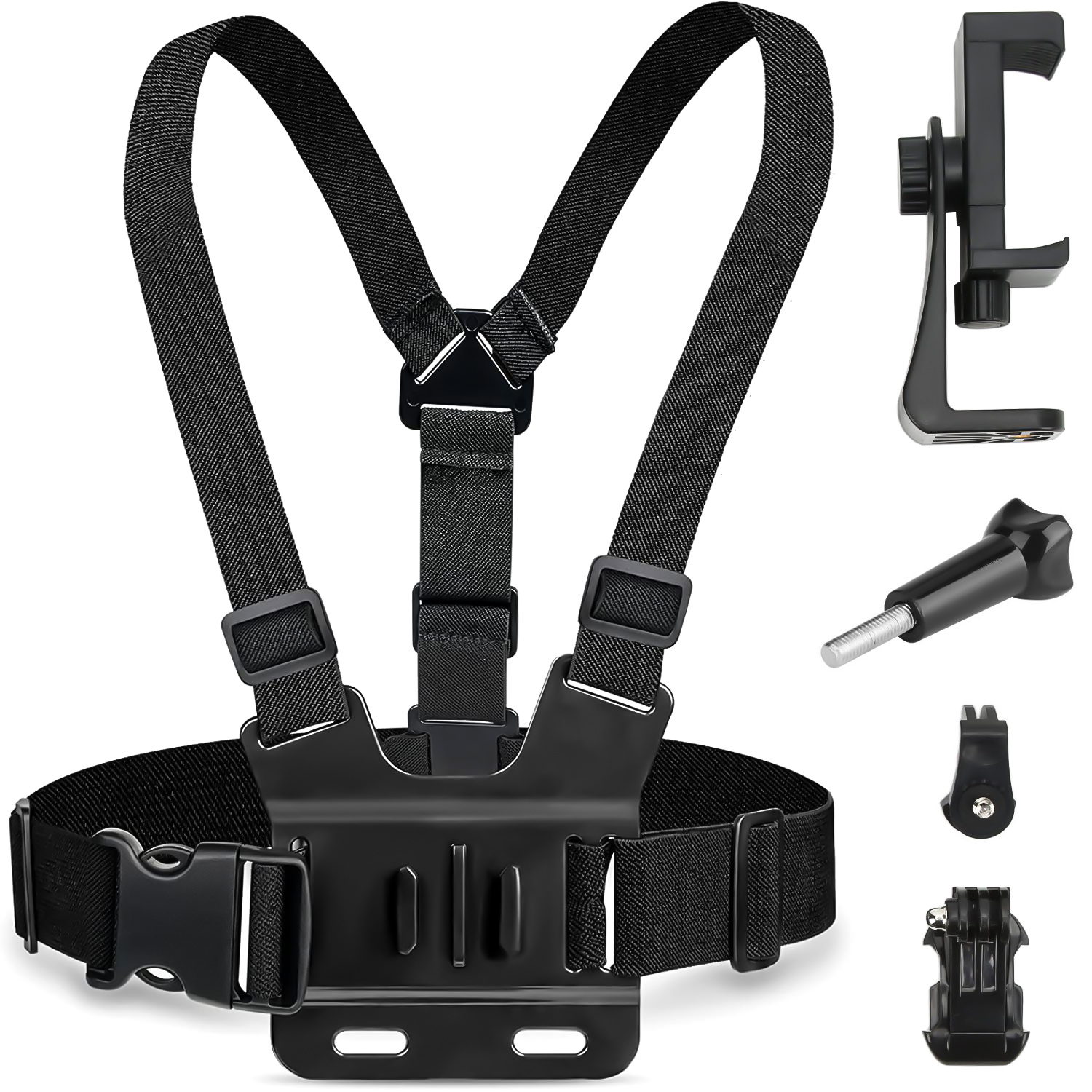 ✅ Uniwersalność 2w1 – dzięki dołączonym adapterom, szelki są kompatybilne zarówno z kamerami sportowymi (GoPro, DJI), jak i smartfonami o szerokości do 100 mm.