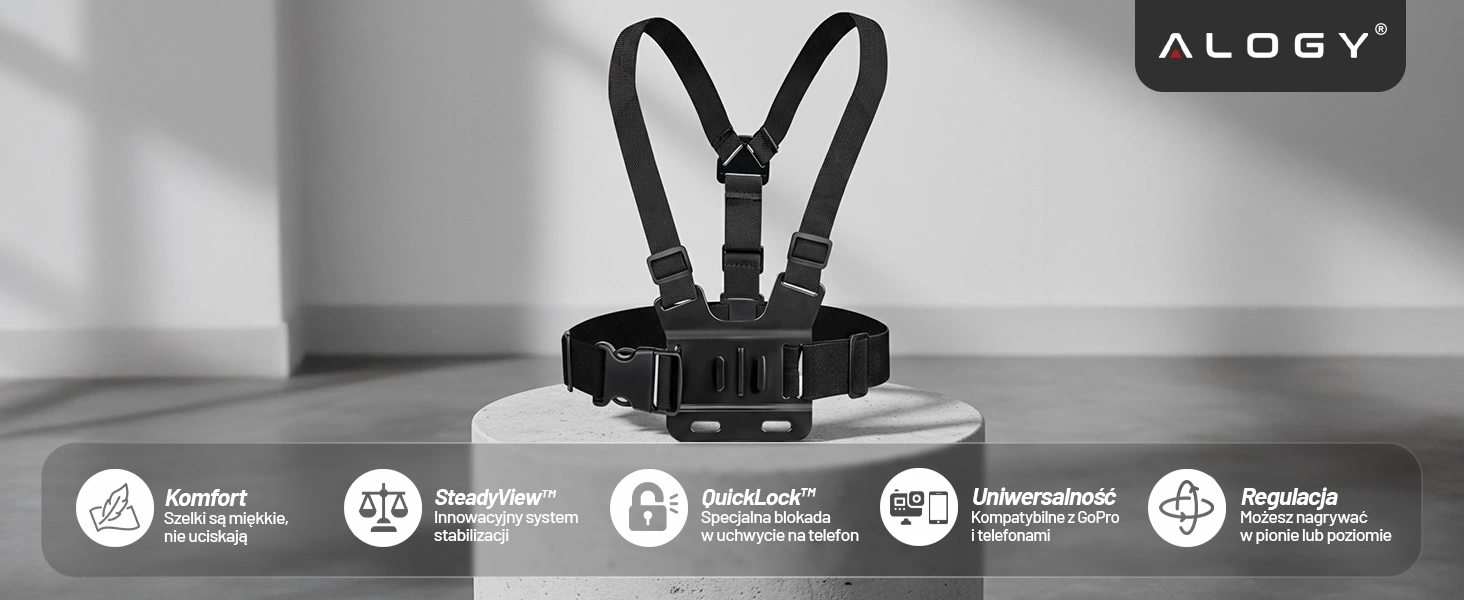 ▶️ Szelki na klatkę piersiową Alogy do telefonu i GoPro - Uchwyt Chest Mount ze stabilizacją