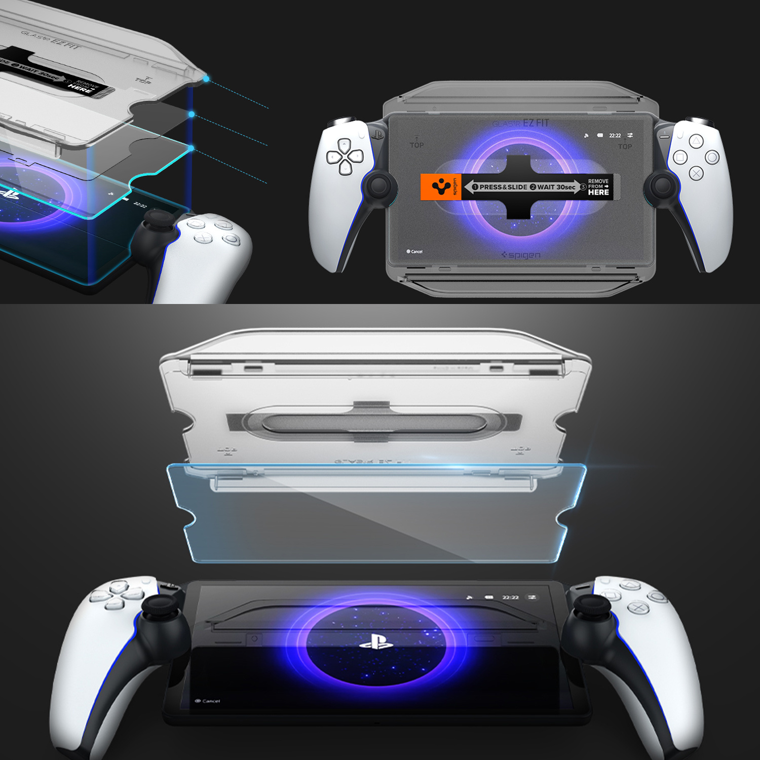 • Szkło hartowane do Sony Playstation Portal Spigen Glas.TR "EZ FIT" z ramką do montażu to produkt, który zapewnia doskonałą ochronę wyświetlacza. Metoda montażu polega na umiejscowieniu ramki montażowej wraz ze szkłem na urządzeniu i dociśnięciu jej.