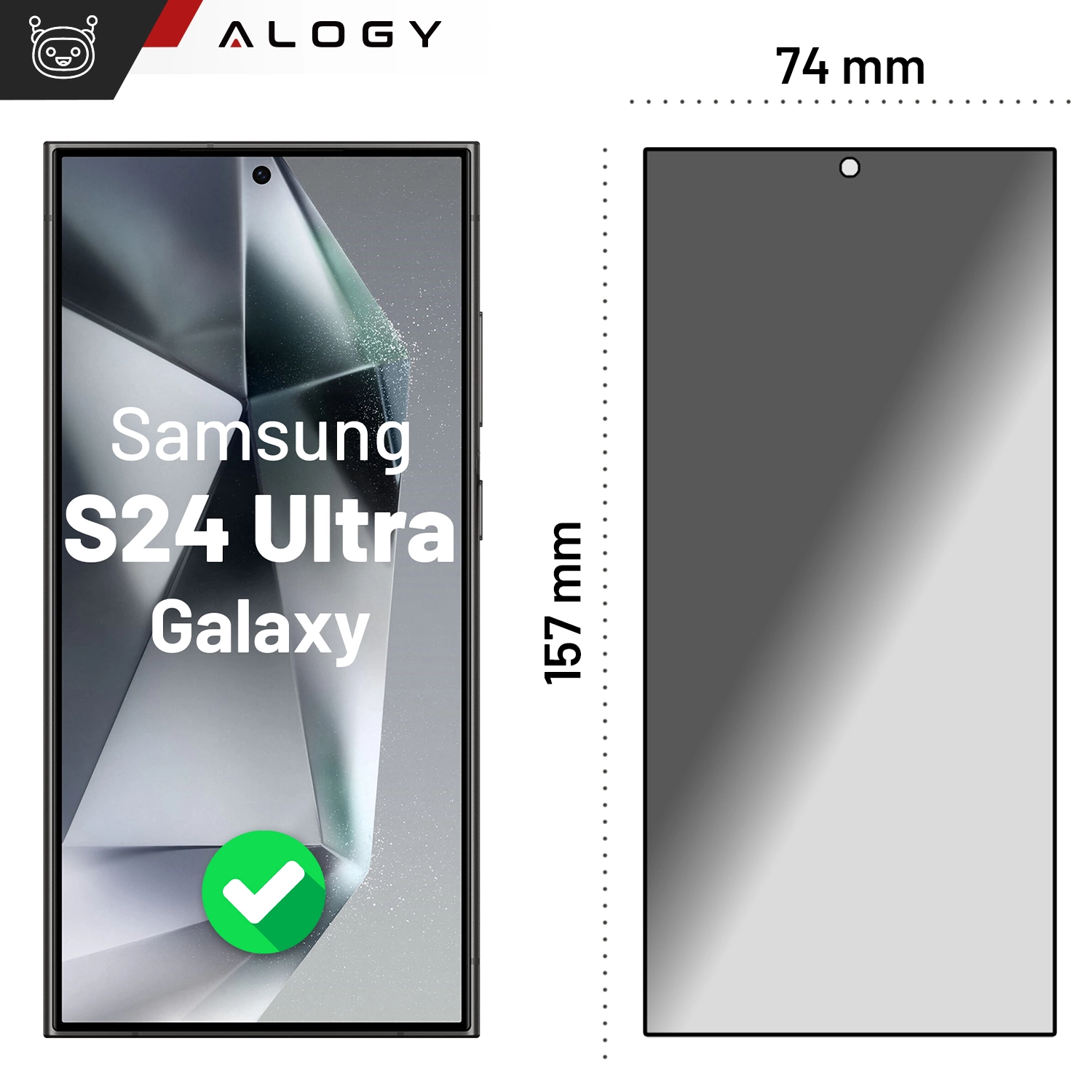 ✅ Prywatyzujące matowe szkło hartowane Alogy Privacy Glass ściśle przylega do płaskiej części ekranu Samsung Galaxy S24 Ultra, a dzięki niewielkiej grubości (0.3mm) jest praktycznie niewidoczne i niewyczuwalne podczas użytkowania.