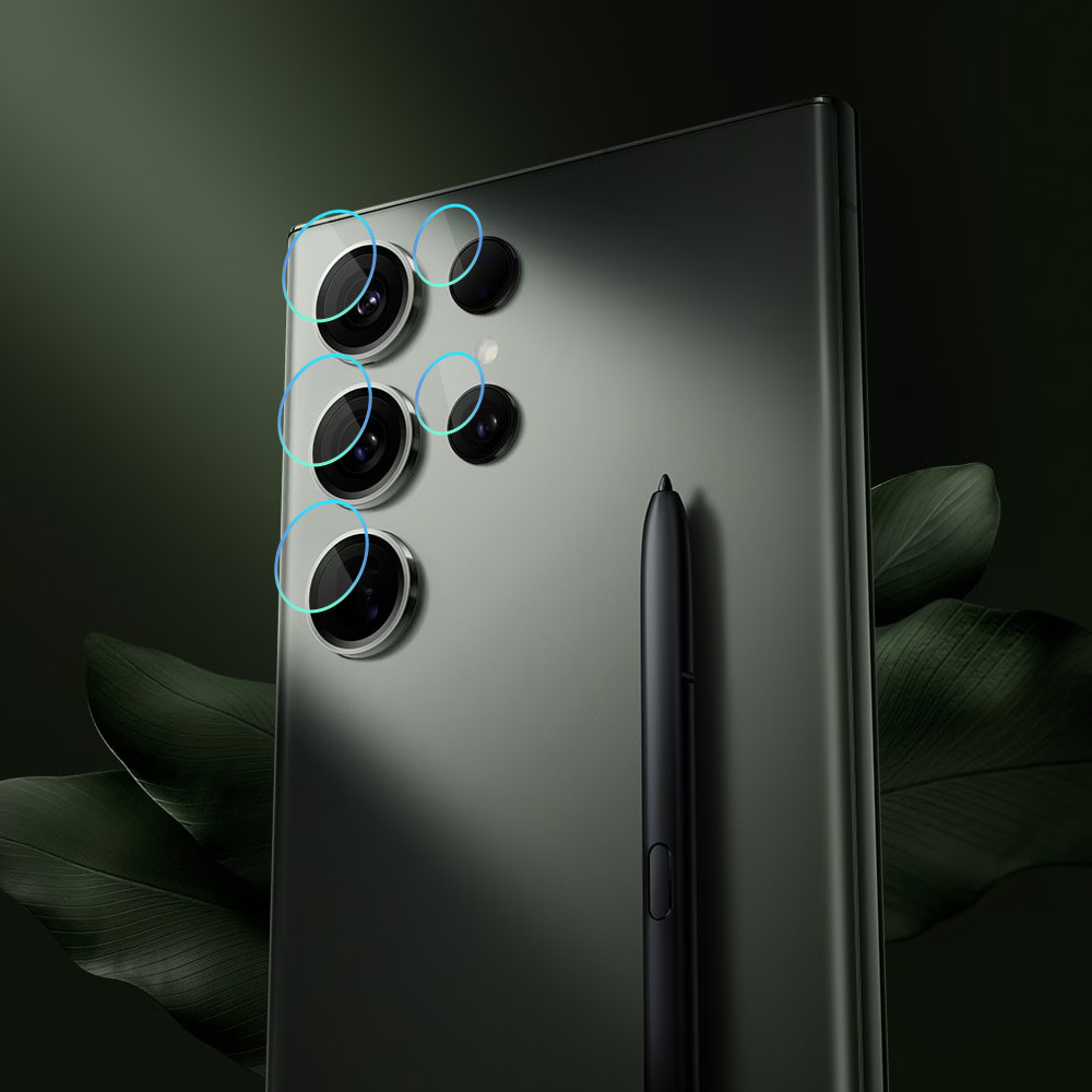 Szkło ochronne od marki 3mk z serii Lens Protection do Samsung Galaxy S23 Ultra to hybrydowe szkło nowej generacji. Jest niezwykle elastyczne i wzmacnia wytrzymałość tylnej kamery/ obiektywu urządzenia. Zapewnia najlepszą ochronę przed zarysowaniami oraz uszkodzeniami.