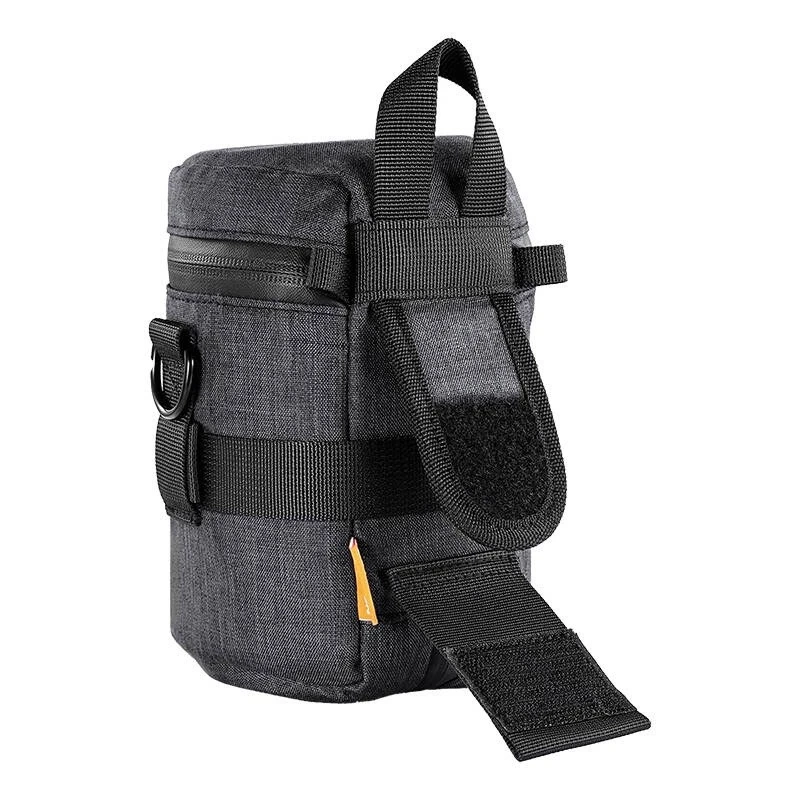 Torba posiada boczny zamek, który po rozpięciu zwiększa pojemność o dodatkowe 27 mm. Dzięki temu torba może pomieścić większość obiektywów DSLR i bezlusterkowych o średnicy i wysokości do 100 x 140 mm. Regulowany pasek z klamrą dodatkowo stabilizuje obiektyw wewnątrz torby, zapobiegając jego przesuwaniu się i zarysowaniom.