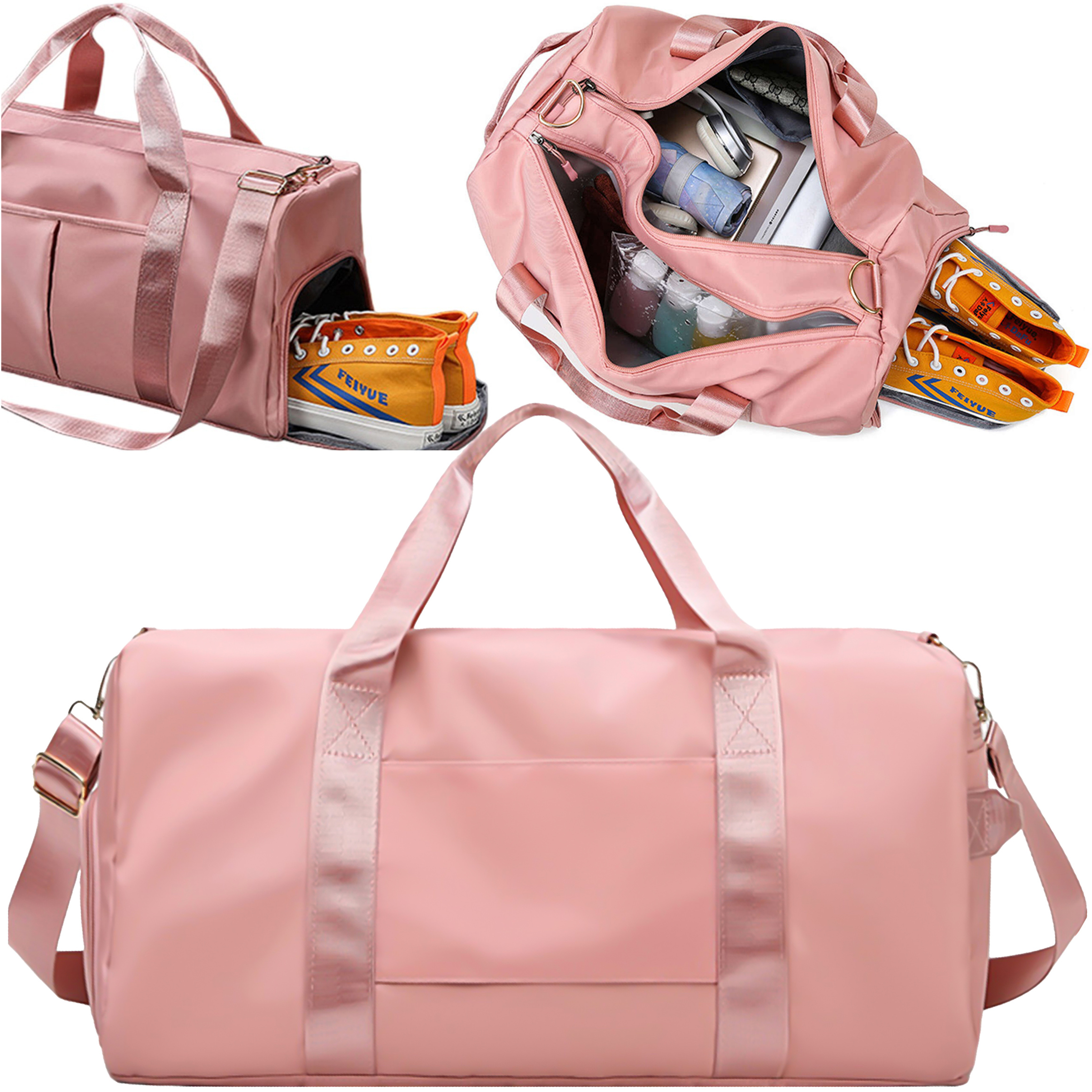 Opinie o Torba podróżna sportowa na ramię damska na siłownie do samolotu bagaż podręczny 48x25 treningowa materiałowa Alogy Różowa