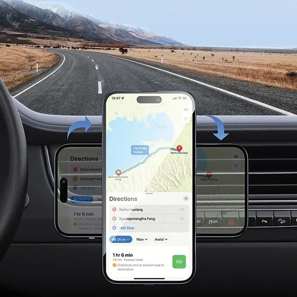 USAMS US-ZJ075 to kompaktowy, uniwersalny uchwyt samochodowy magnetyczny montowany w kratce wentylacyjnej. Dzięki solidnej konstrukcji i kompatybilności z MagSafe, zapewnia wygodę użytkowania i bezpieczeństwo telefonu w czasie jazdy.