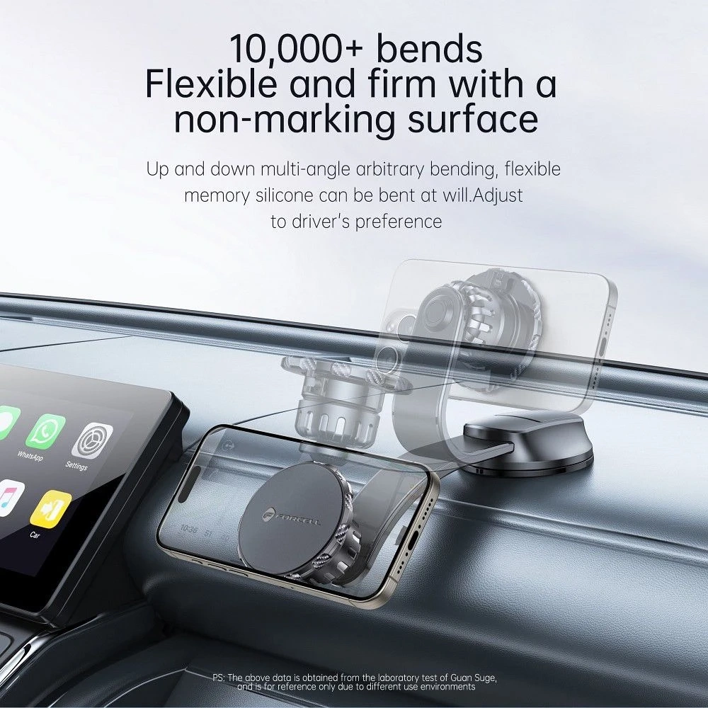 Szukasz uchwytu, który dopasuje się do Ciebie? Uchwyt samochodowy marki Forcell został zaprojektowany z myślą o komforcie i funkcjonalności. Elastyczne ramię o długości 20 cm umożliwia ustawienie telefonu w dowolnej pozycji i zapamiętuje wybraną konfigurację, zapewniając wygodę użytkowania podczas każdej podróży.