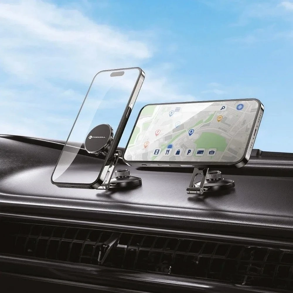 Szukasz trwałego uchwytu do samochodu, który będzie zarówno funkcjonalny, jak i estetyczny? Forcell IronSecure to magnetyczny uchwyt samochodowy o składanej, metalowej konstrukcji, który możesz zamontować niemal wszędzie – na szybie, desce rozdzielczej czy dowolnej płaskiej powierzchni.