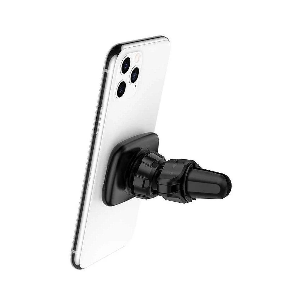 Uchwyt magnetyczny marki HOCO. Pozwala na bezpieczne korzystanie ze smartfona w czasie jazdy. Jest niezwykle uniwersalny, pozwala na obsługę niemal każdego urządzenia na rynku. Wbudowane magnesy (6 sztuk) zapewniają pewny chwyt, zapobiegając wypadaniu smartfona z uchwytu. Specjalna konstrukcja pozwala na łatwy montaż w kratce nawiewu. Wykonany z lekkich, solidnych materiałów, zapewnia komfortowe i bezpieczne użytkowanie. Mocowanie do kratki jest skręcane, co zapewnia pewny montaż w kratce. Mocowania z boku uchwytu umożliwiają zaczepienie kabla. Obrót 360 stopni pozwala na dostosowanie parametrów produktu do obsługiwanego urządzenia. Specyfikacja:Materiał: PC, ABS, silikon Rozmiar: 75 x 57 x 43 mm Waga: 66 g Zakres nośności: 2 kg Miejsce montażu: kratka wylotu powietrza
